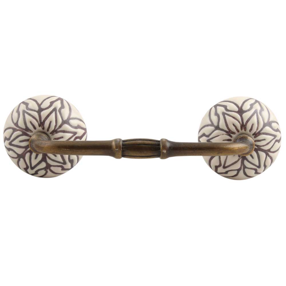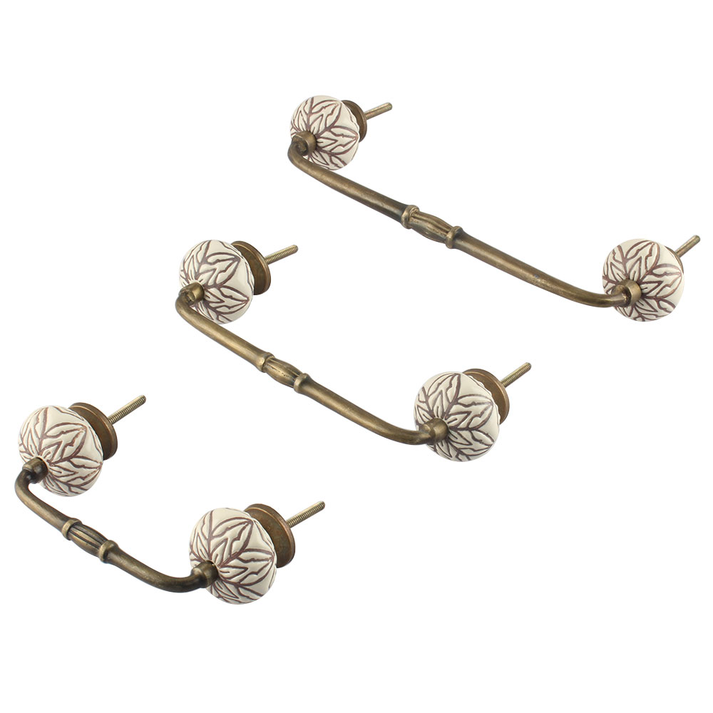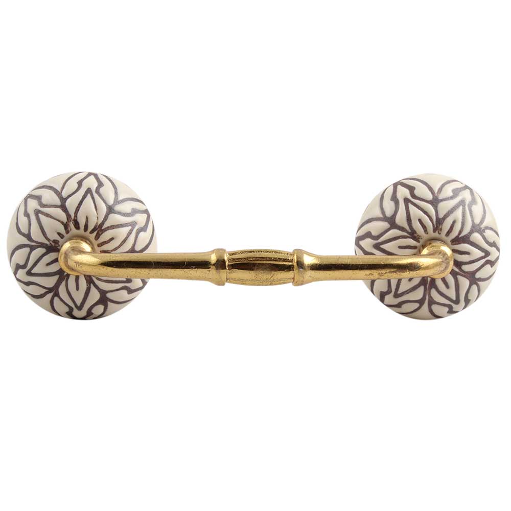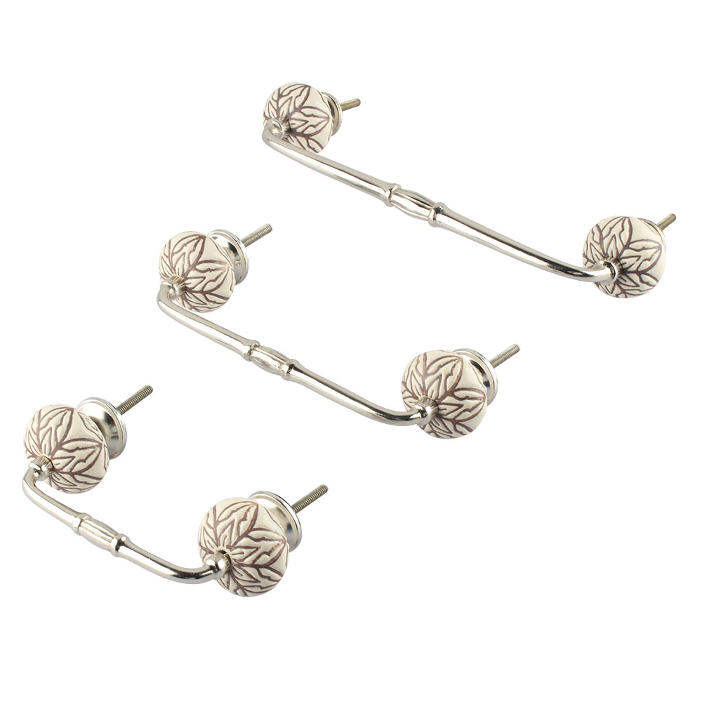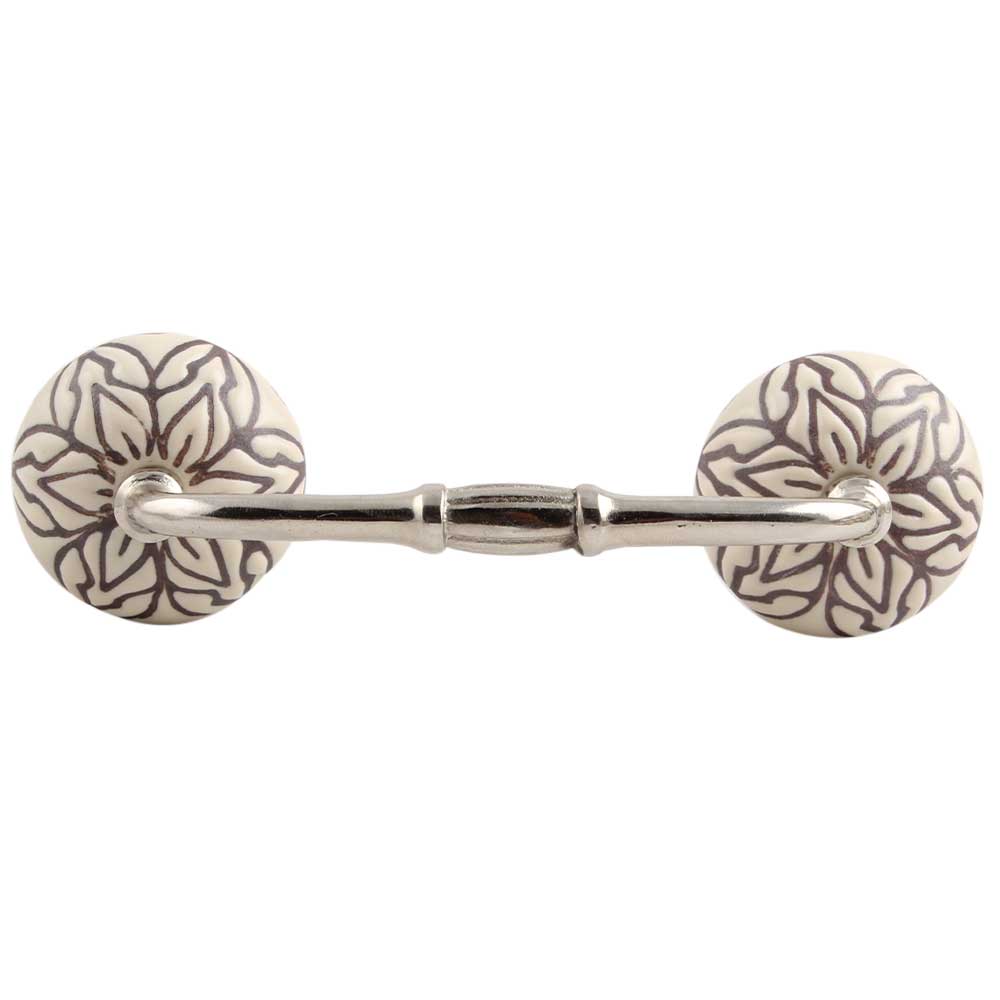 Cream Amarylis Floral Etched Ceramic Bridge Handle. Ideal for Drawer, Dresser, Cabinet, Wardrobe, Cupboard and Almirah.