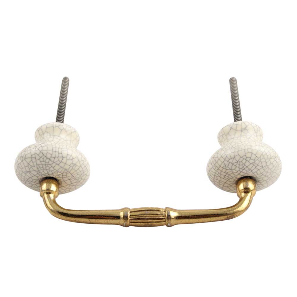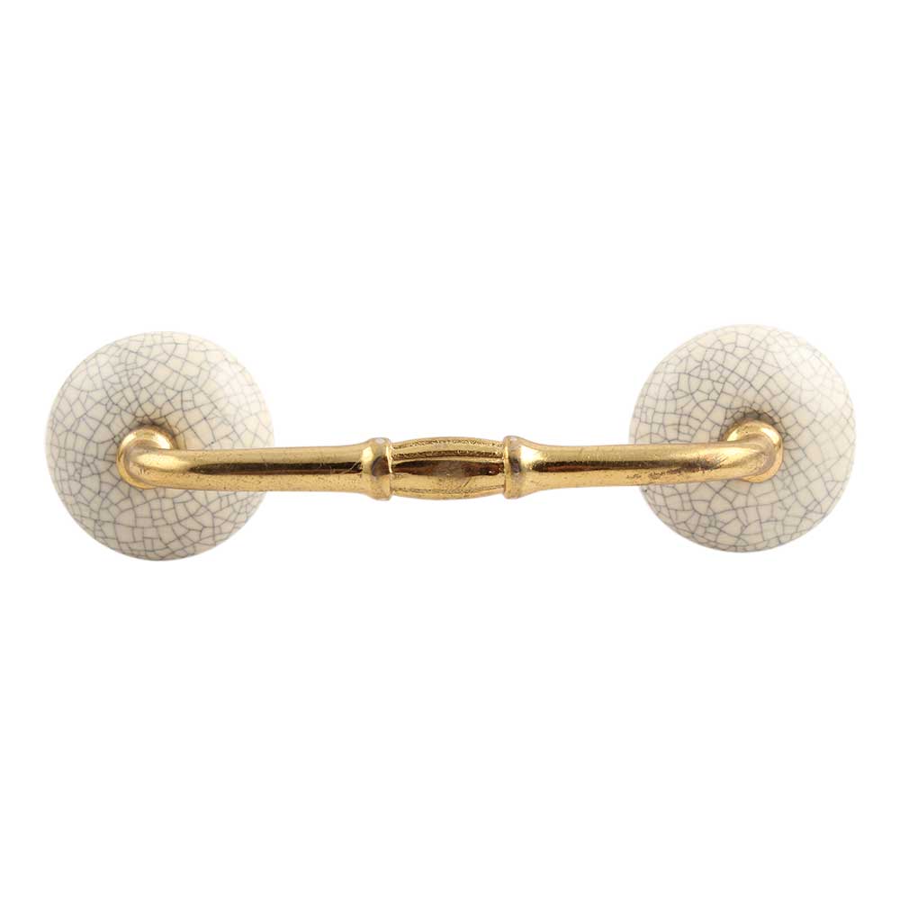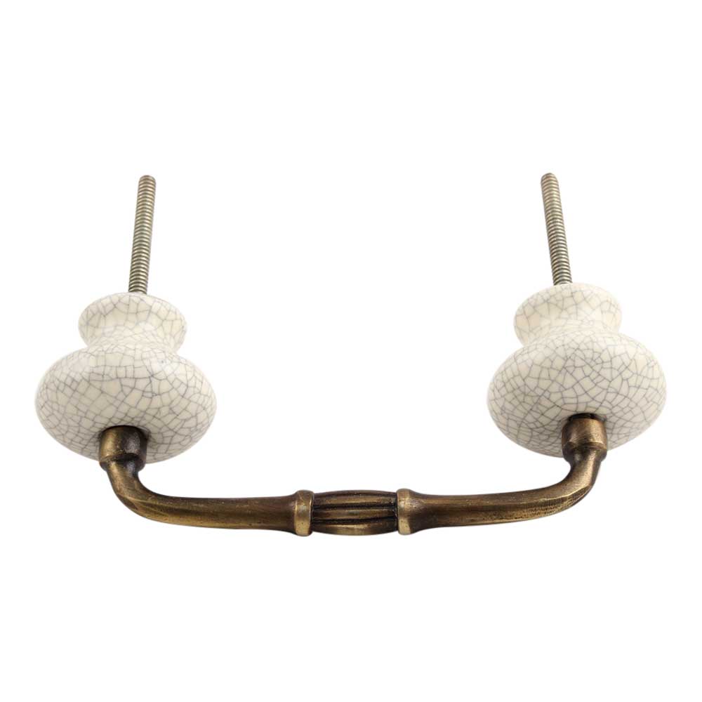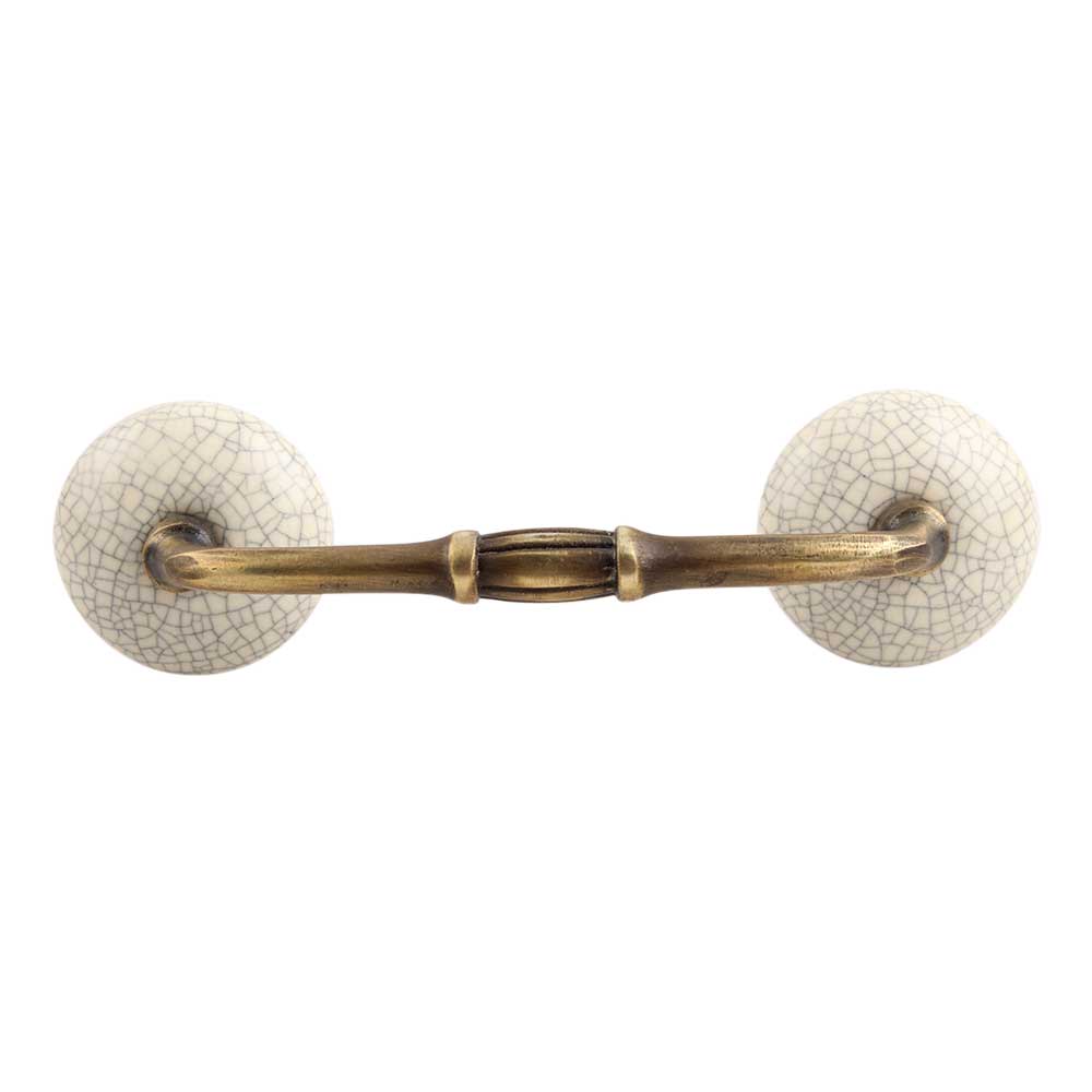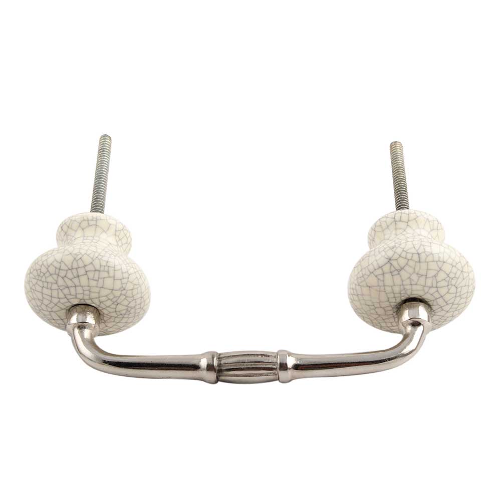 Cream and Black Crackle Ceramic Bridge Handle. Ideal for Drawer, Dresser, Cabinet, Wardrobe, Cupboard and Almirah.