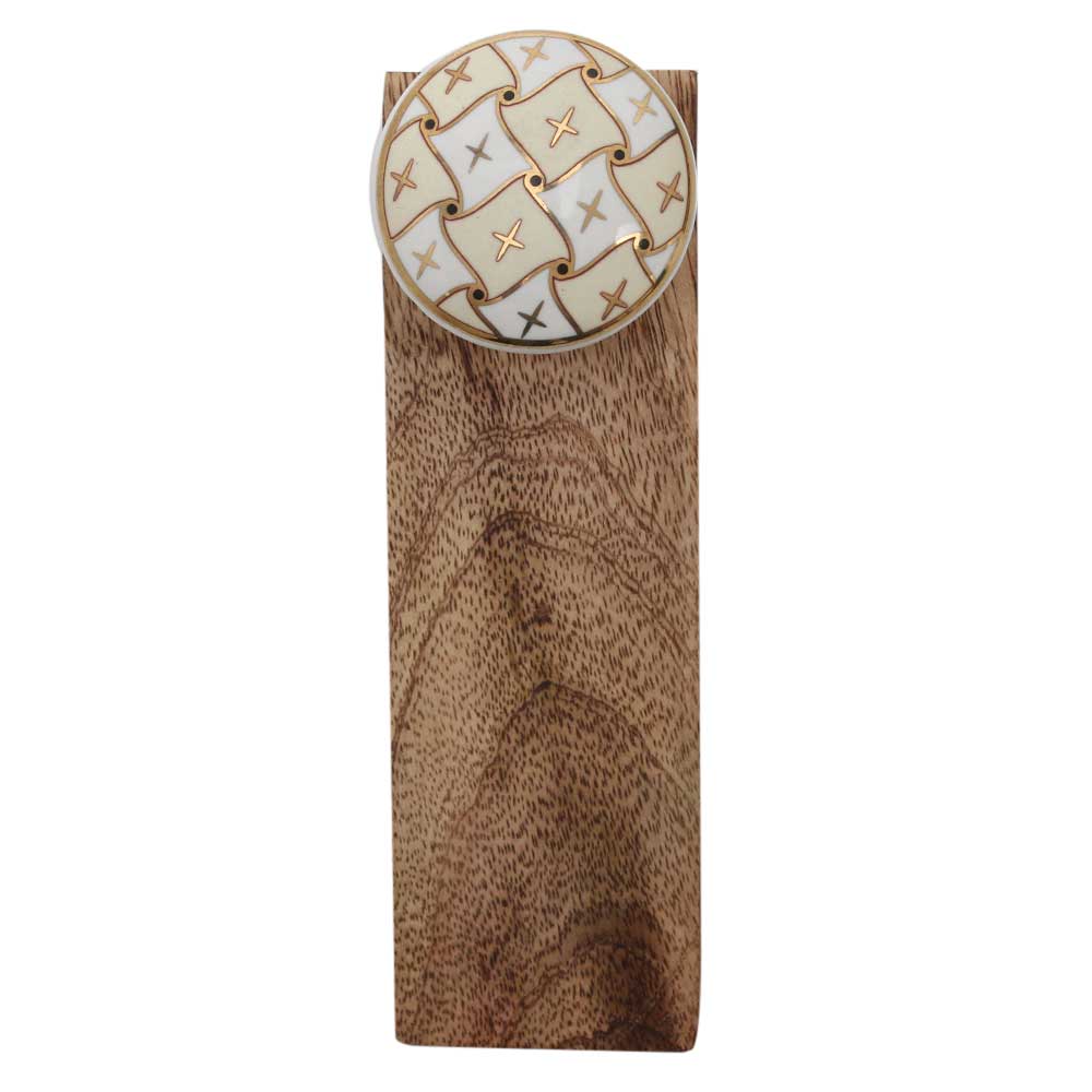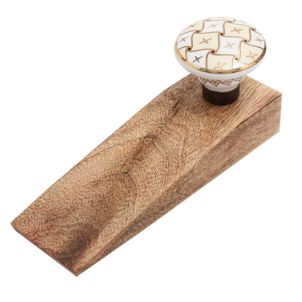 Handmade Ceramic Wooden Door Stopper.Wooden Door Stopper with a Ceramic Knob to Carry it Easily. This Wooden Door Stopper has Glue Dots under it to Ensure that it does not Slip. It is Handmade by the Craftsmen of India and this Innovative Door Stopper won't Disappoint You.
