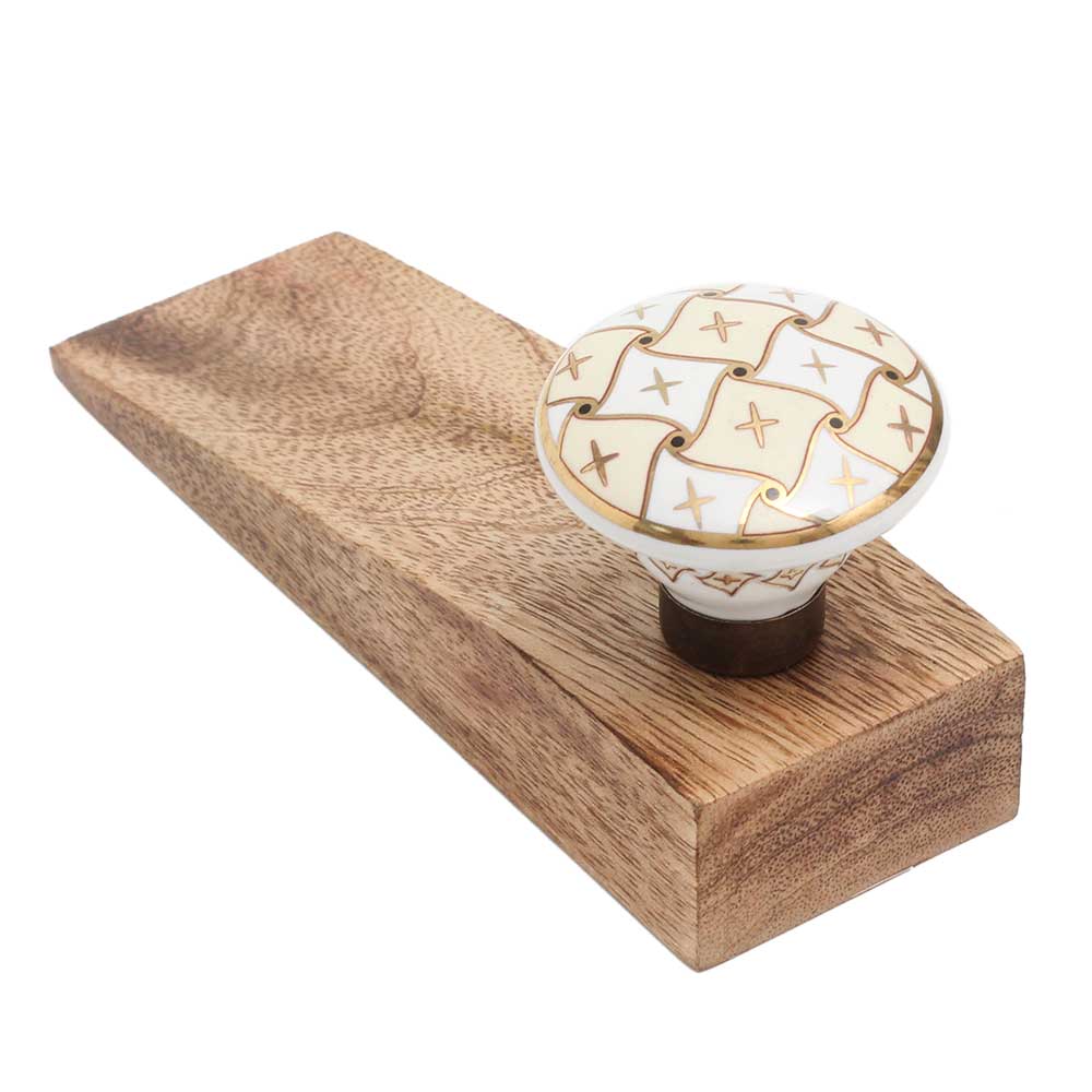 Cream and White Golden Checkerboard Ceramic Wooden Door Stopper
