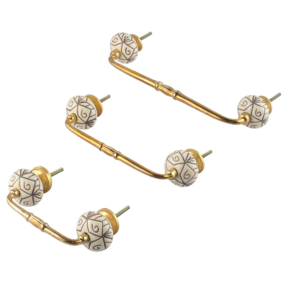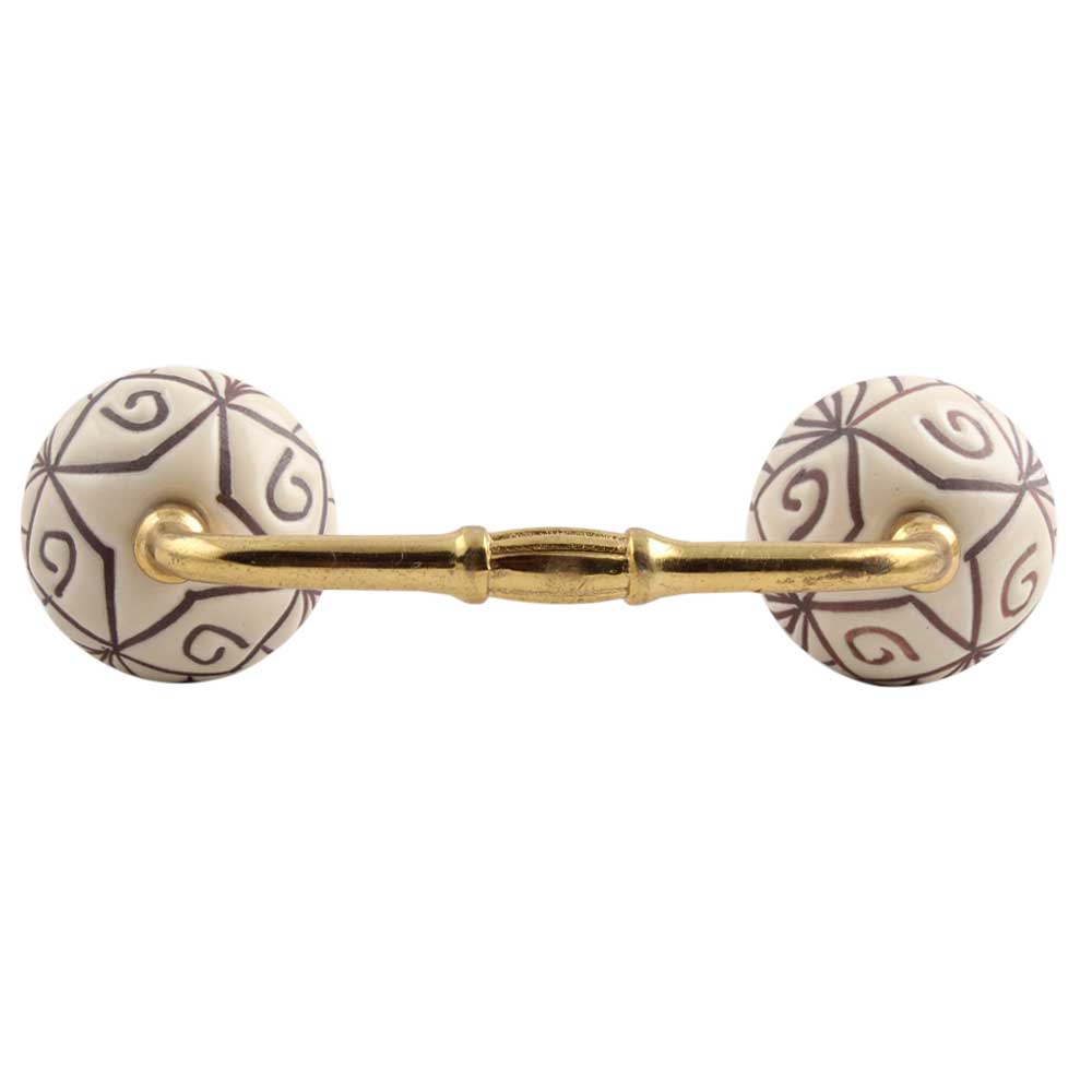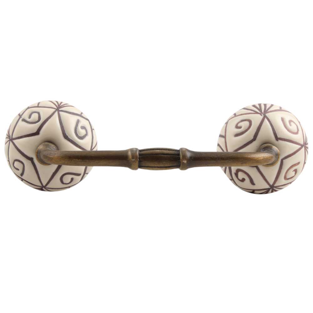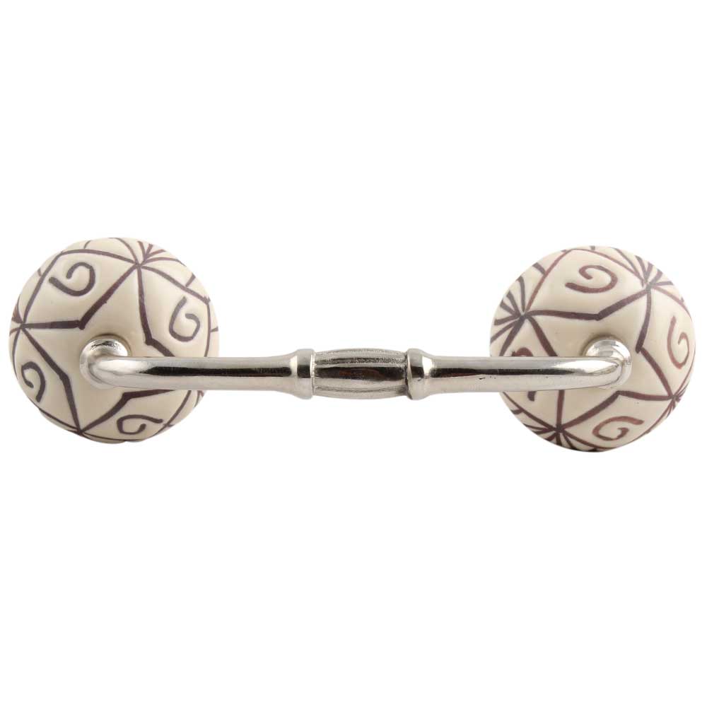 Cream Base Brown Etched Ceramic Floral Bridge Handle. Ideal for Drawer, Dresser, Cabinet, Wardrobe, Cupboard and Almirah.