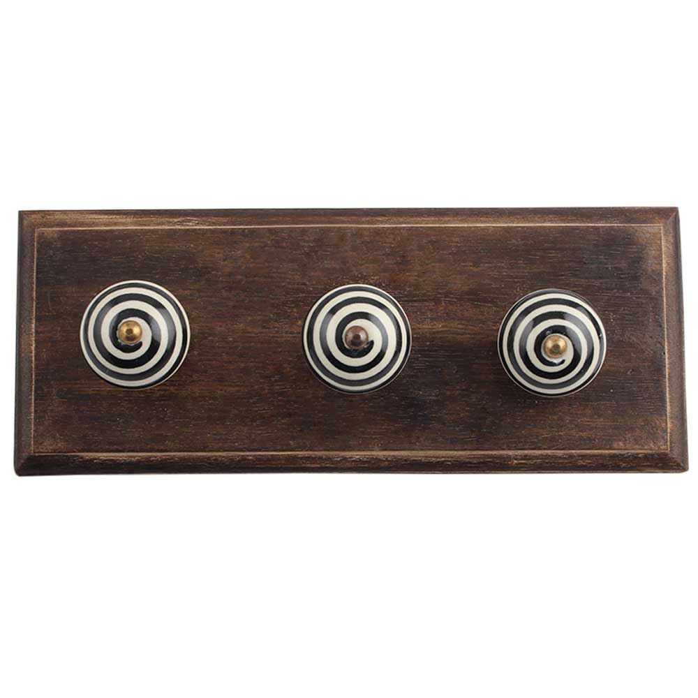 Cream Black Strip Wooden Hooks . A Perfect Complement to the Soft Tone of the Wood are these White Traditional Hat &Amp; Coat Hook Made of Genuine Porcelain and Brass. It can be use to Hang Jewellery, Leashes, Towels, Scarves, Light Weight Sweaters, Caps Etc.
