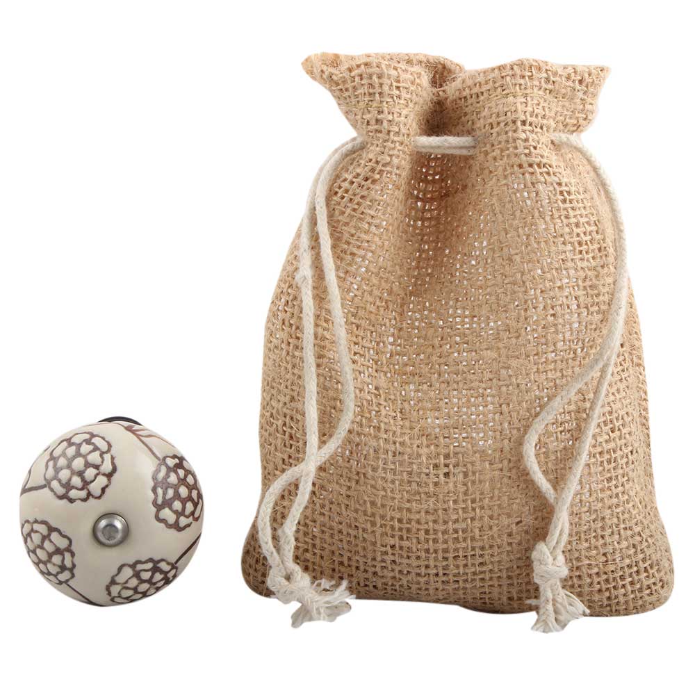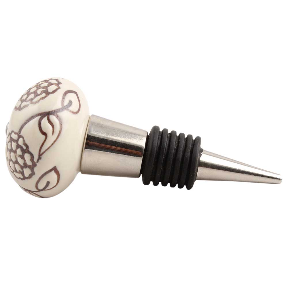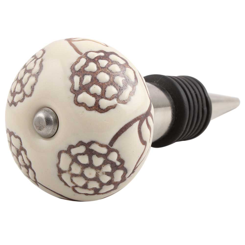 Cream Brown Marigold Etched Ceramic Wine Stopper.zinc alloy wine bottle stopper with attractive Jute Bag Packaging.