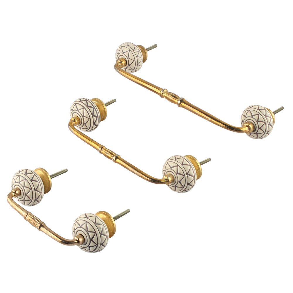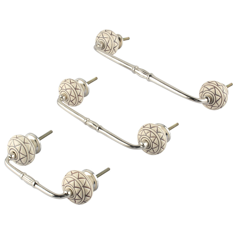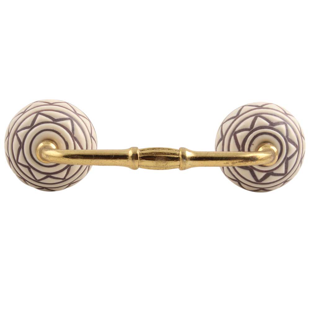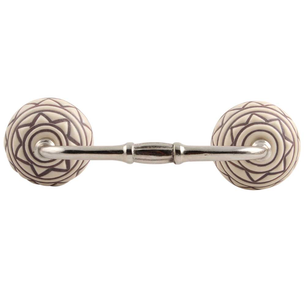 Cream Brown Pattern Etched Ceramic Bridge Handle. Ideal for Drawer, Dresser, Cabinet, Wardrobe, Cupboard and Almirah.