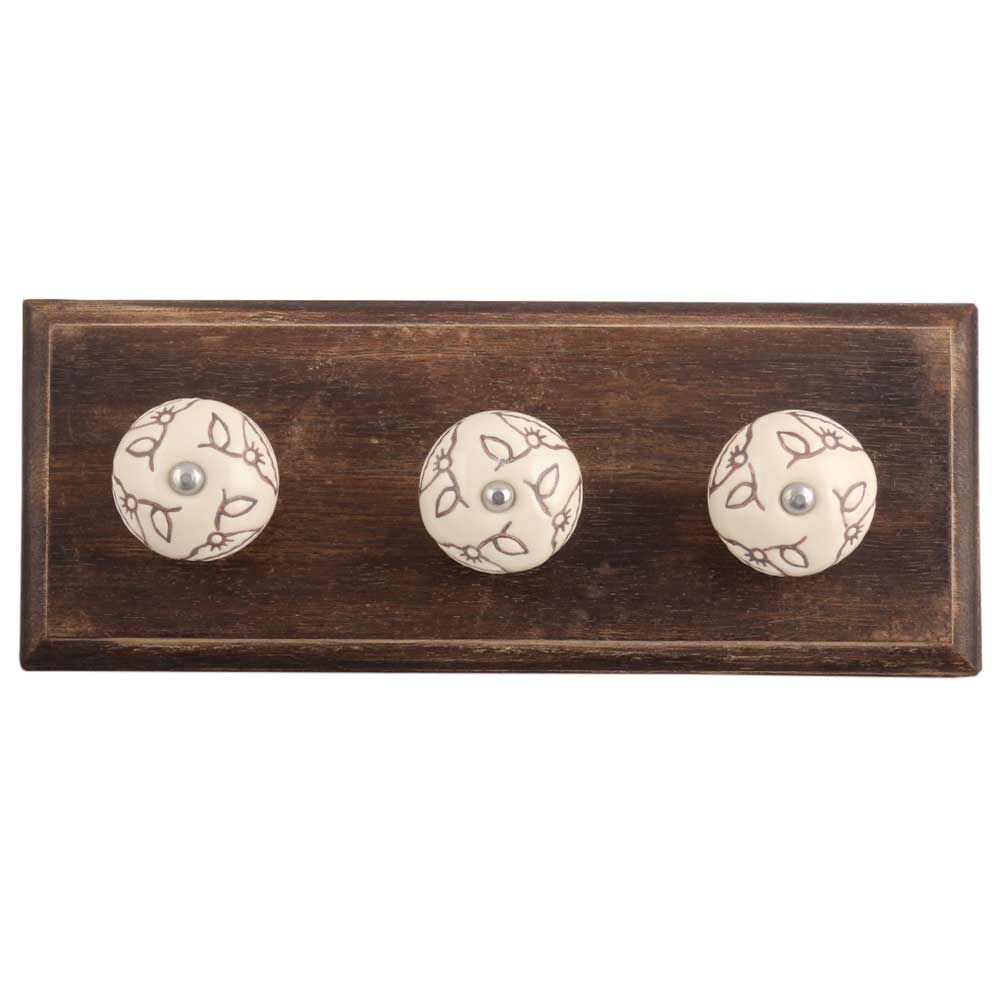 Cream Calla Lily Brown Etched Ceramic Wooden Hook. A Perfect Complement to the Soft Tone of the Wood are these White Traditional Hat & Coat Hook Made of Genuine Porcelain and Brass. It can be use to Hang Jewellery, Leashes, Towels, Scarves, Light Weight Sweaters, Caps Etc.