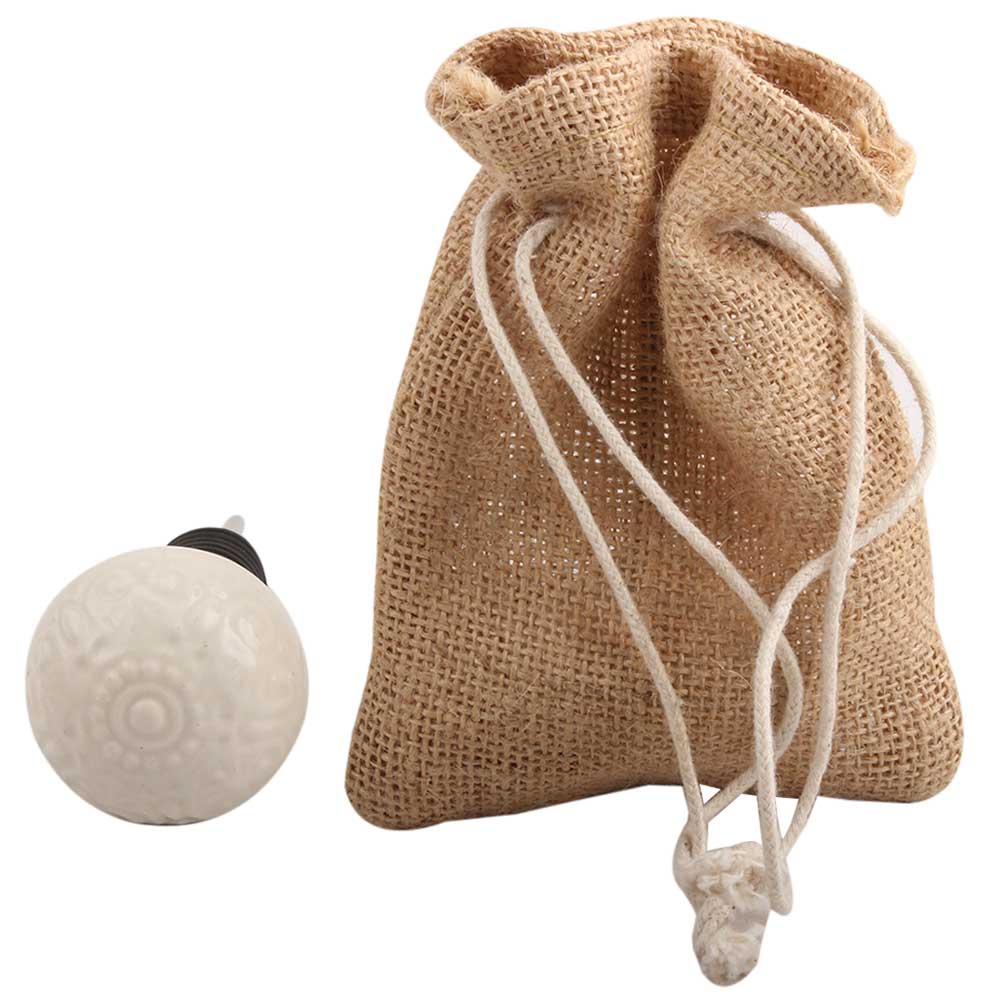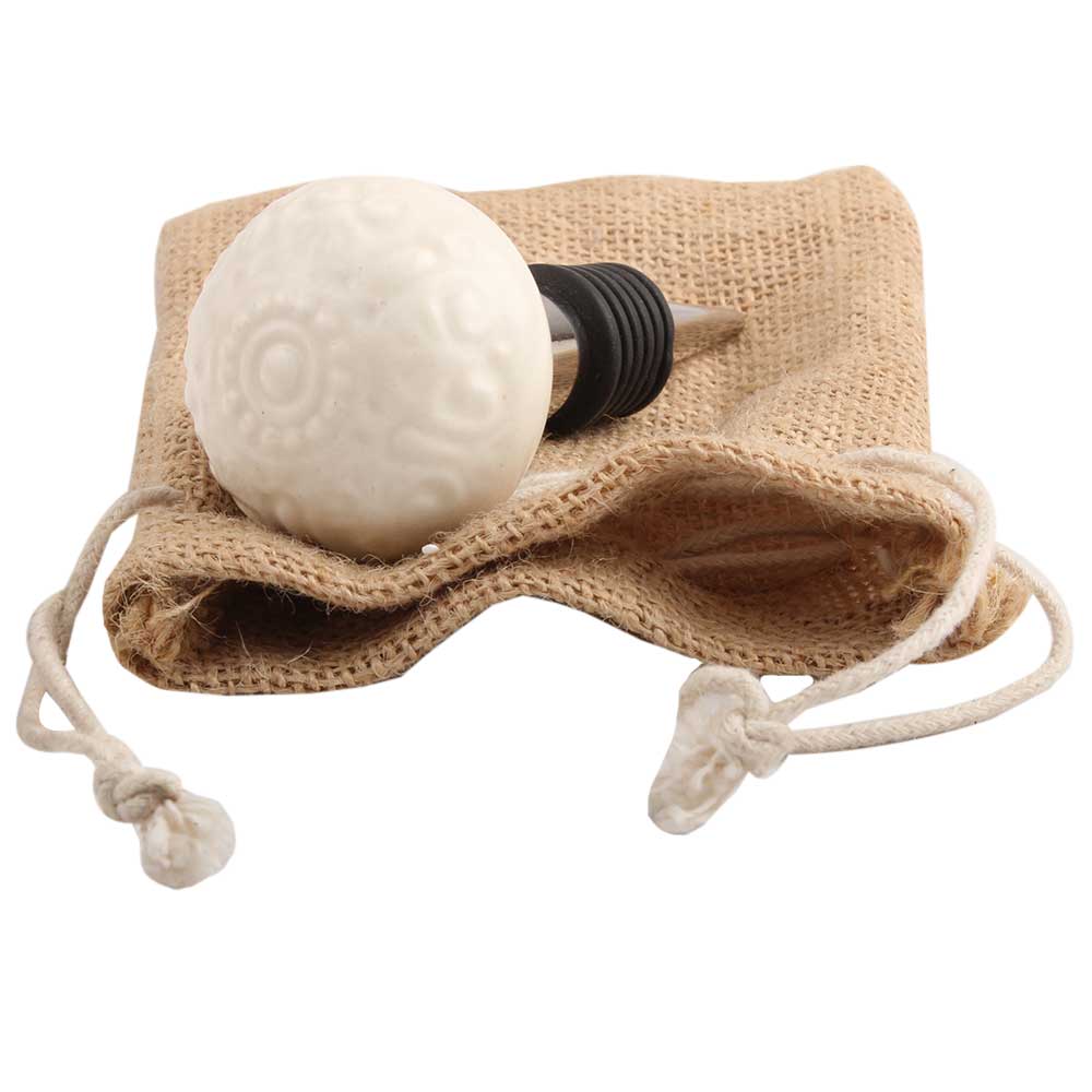 Cream Ceramic Floral Wine Stopper.zinc alloy wine bottle stopper with attractive Jute Bag Packaging.