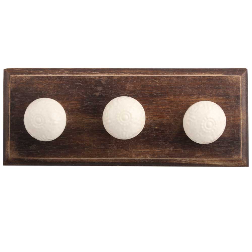 Cream Ceramic Floral Wooden Hook. A Perfect Complement to the Soft Tone of the Wood are these White Traditional Hat & Coat Hook Made of Genuine Porcelain and Brass. It can be use to Hang Jewellery, Leashes, Towels, Scarves, Light Weight Sweaters, Caps Etc.