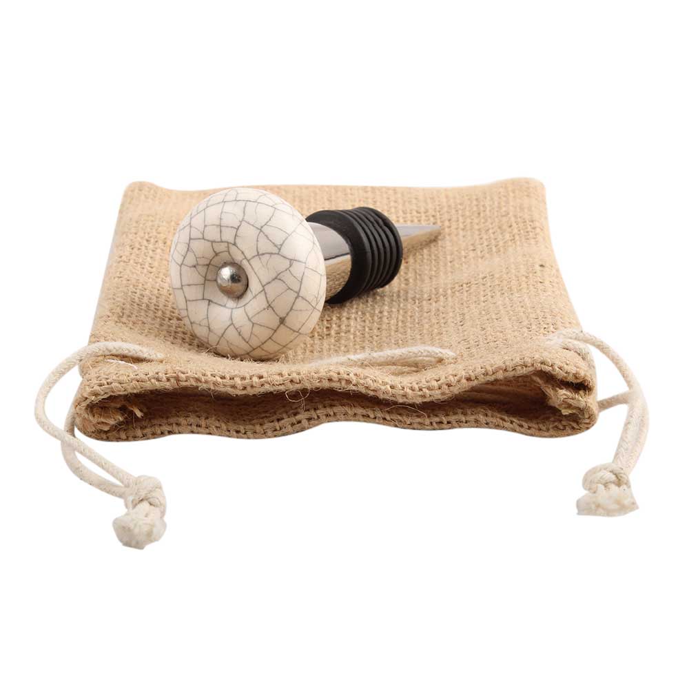 Cream Crackle Ceramic Wine Stopper.zinc alloy wine bottle stopper with attractive Jute Bag Packaging.