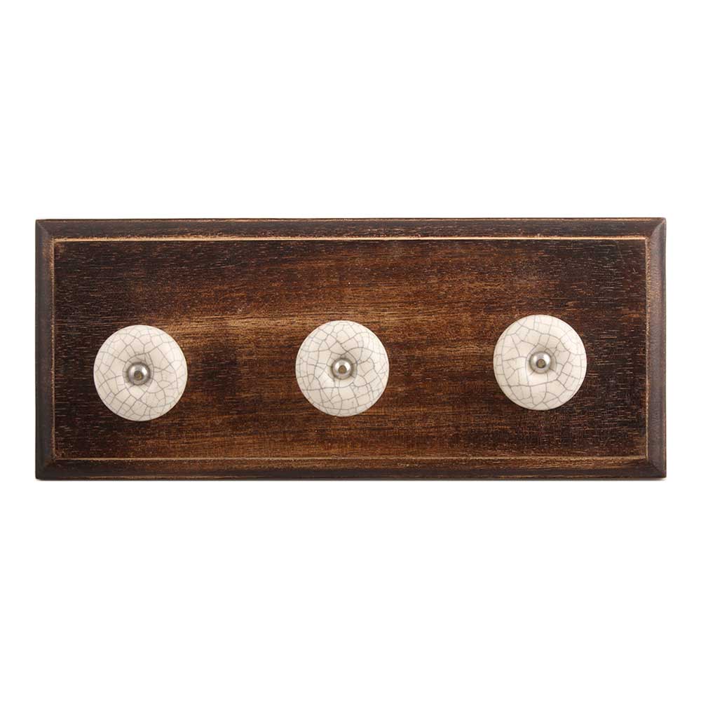 Cream Crackle Handmade Ceramic Wooden Hook. A Perfect Complement to the Soft Tone of the Wood are these White Traditional Hat & Coat Hook Made of Genuine Porcelain and Brass. It can be use to Hang Jewellery, Leashes, Towels, Scarves, Light Weight Sweaters, Caps Etc.