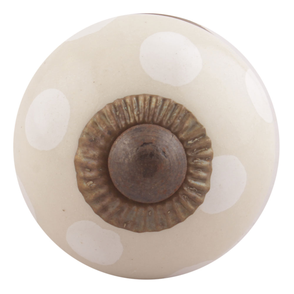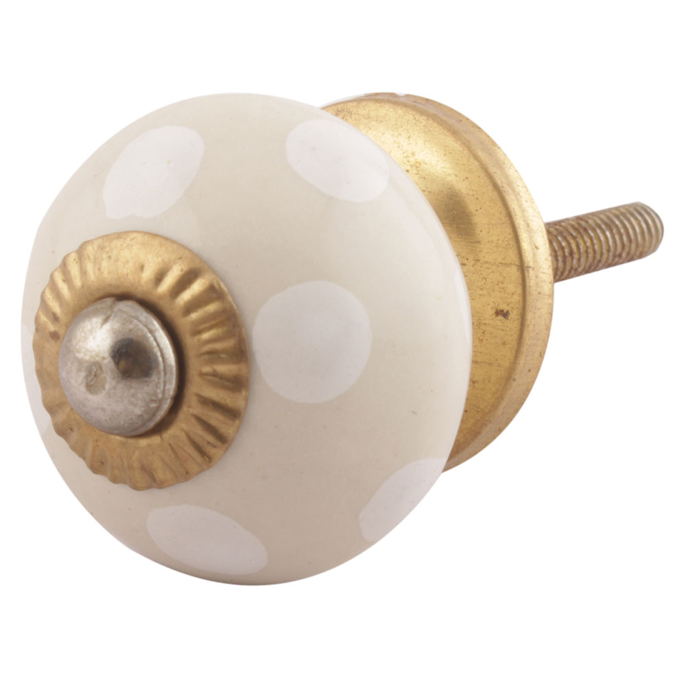 Cream Dotted Small Ceramic Drawer Knobs Online . Ideal for Drawer, Dresser, Cabinet, Wardrobe, Cupboard and Almirah.