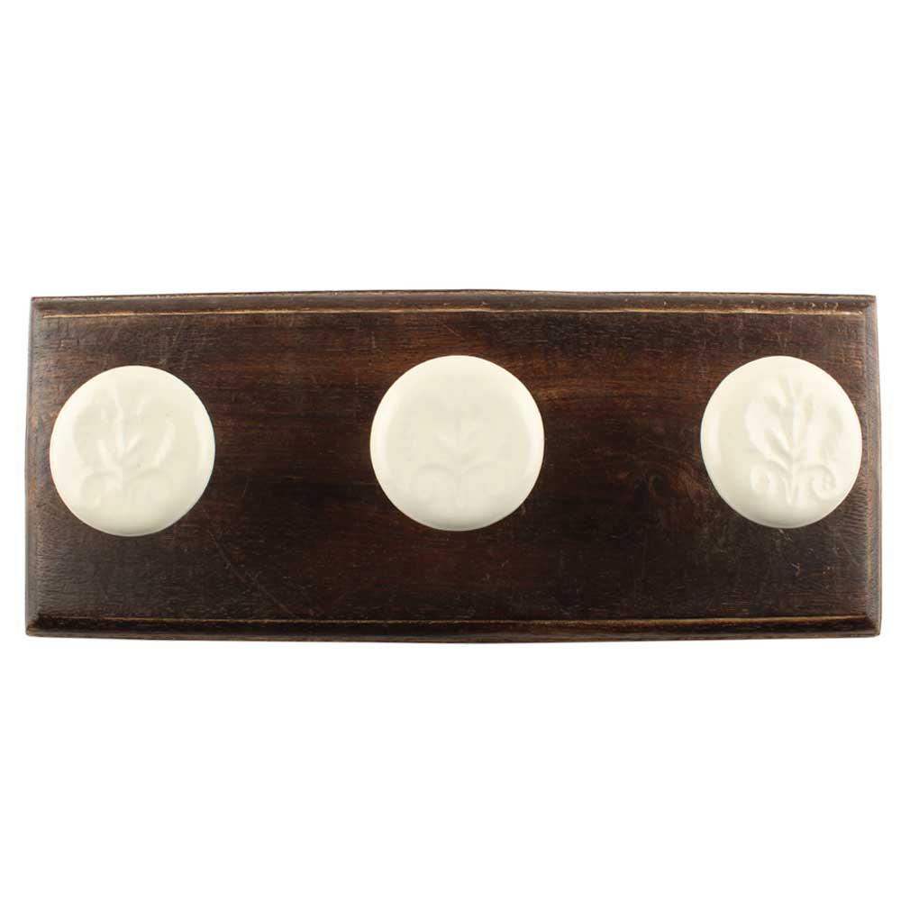 Cream Flower Ceramic Wooden Hook. A Perfect Complement to the Soft Tone of the Wood are these White Traditional Hat and Coat Hook Made of Genuine Porcelain and Brass. It can be used to Hang Jewelry, Leashes, Towels, Scarves, Light Weight Sweaters, Caps etc.