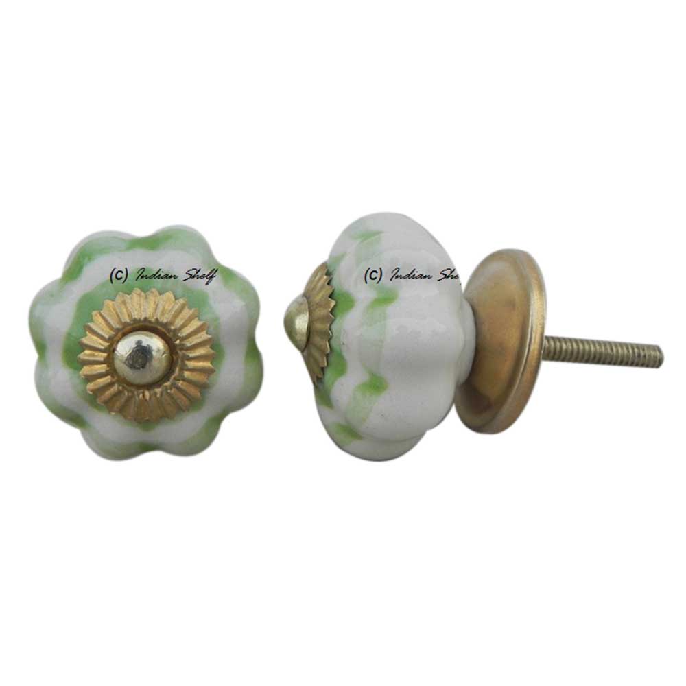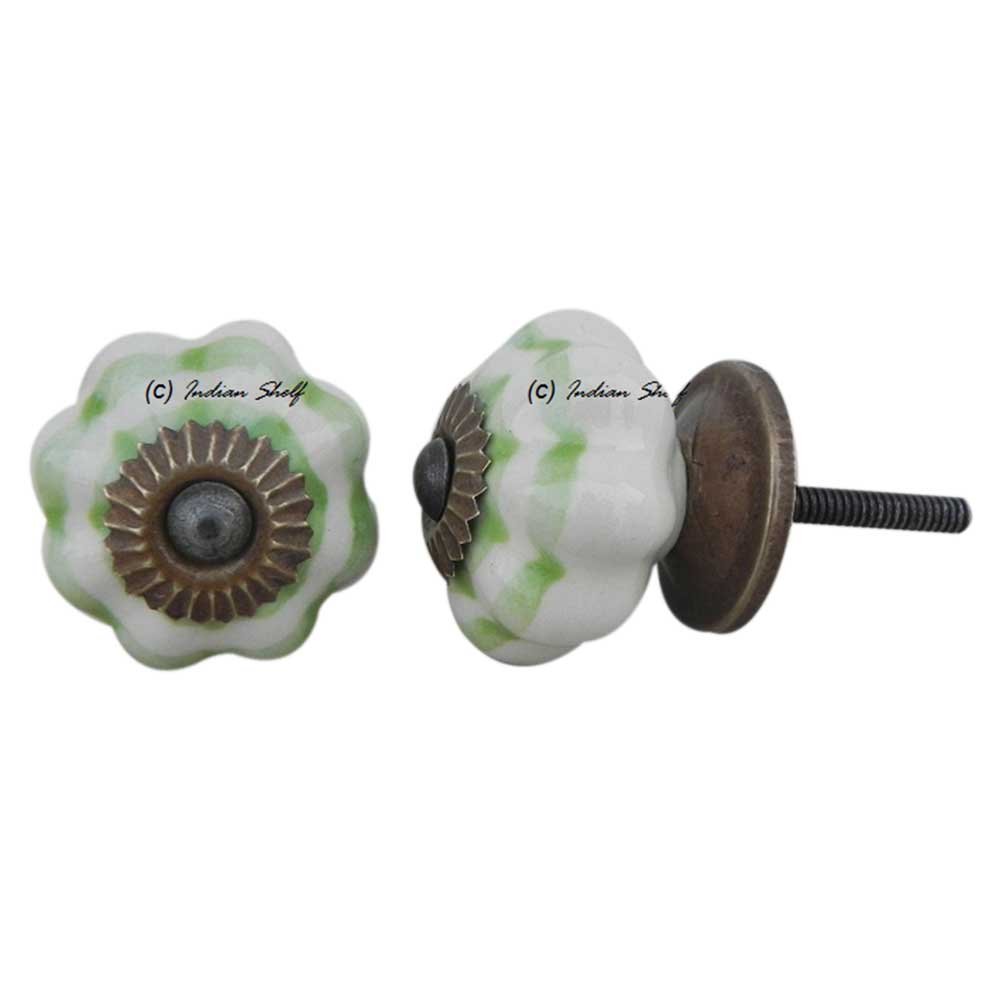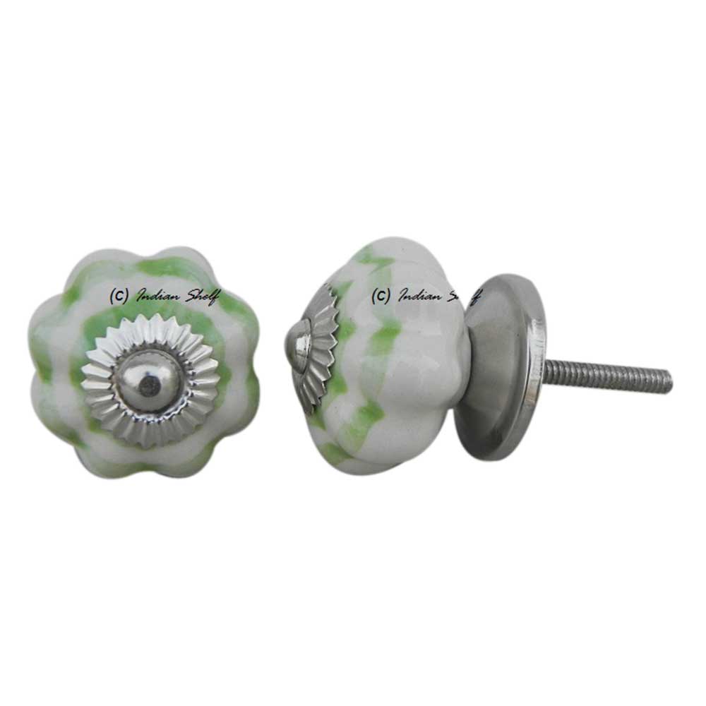 Cream Green Medium Melon Ceramic knob. Ideal for kitchen cabinets, kitchen drawers, dining room, bed room, chest drawers, dressing tables, almirah