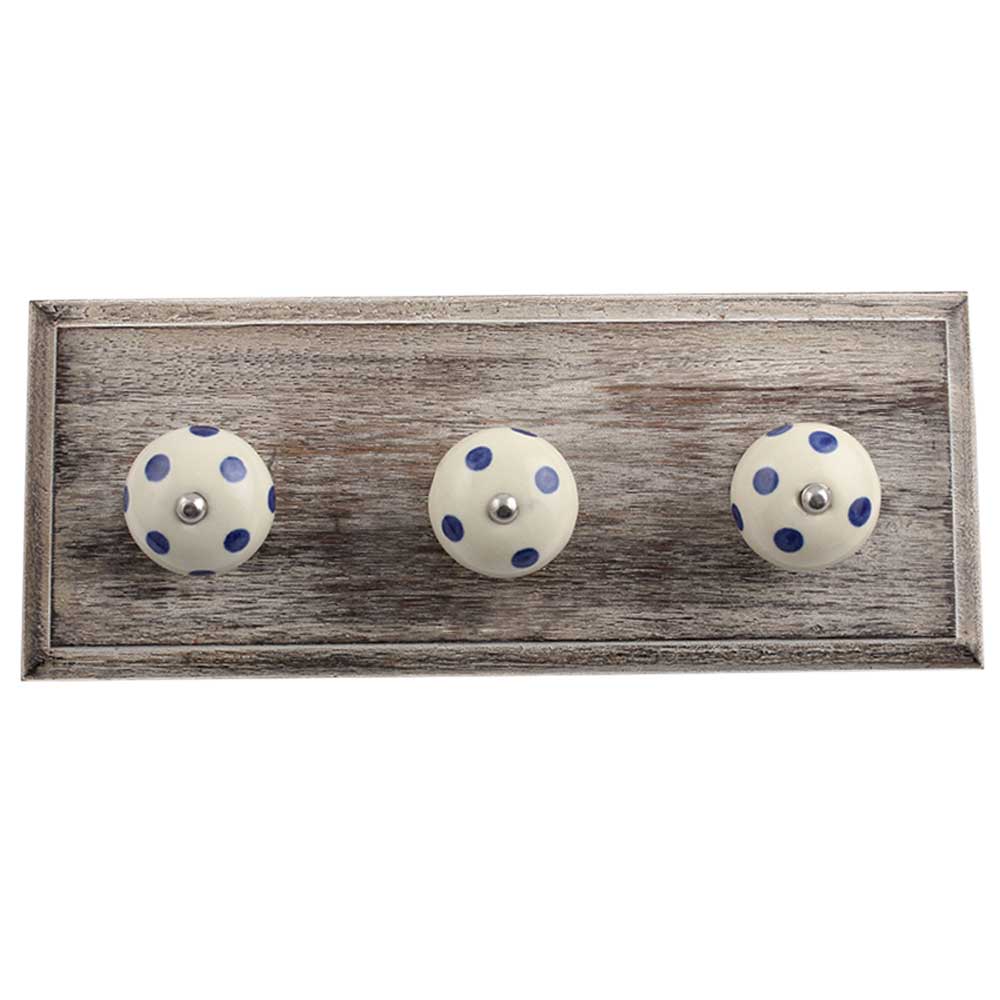 Cream Navy Blue Dot Wooden Hooks. A Perfect Complement to the Soft Tone of the Wood are these White Traditional Hat &Amp; Coat Hook Made of Genuine Porcelain and Brass. It can be use to Hang Jewellery, Leashes, Towels, Scarves, Light Weight Sweaters, Caps Etc.