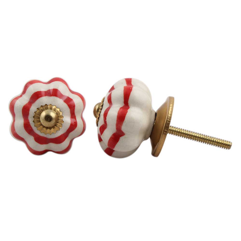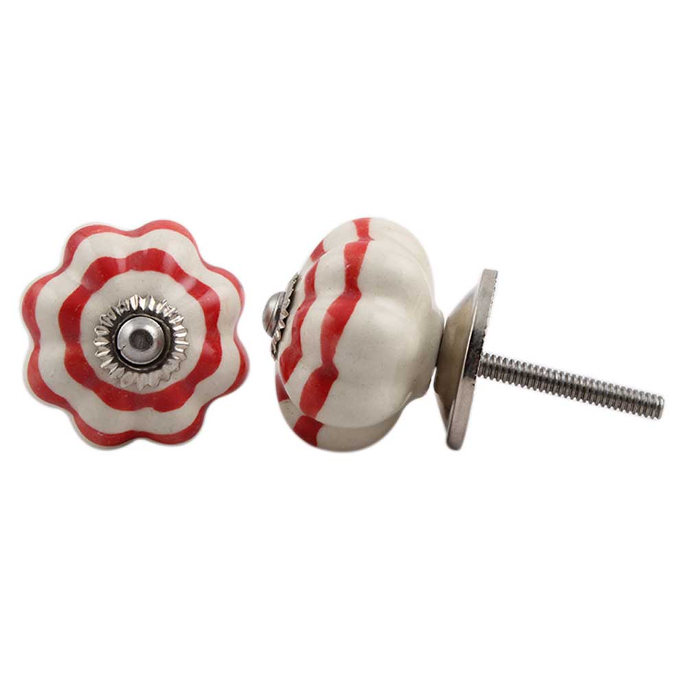 Cream Red Medium Melon Ceramic knob. Ideal for kitchen cabinets, kitchen drawers, dining room, bed room, chest drawers, dressing tables, almirah
