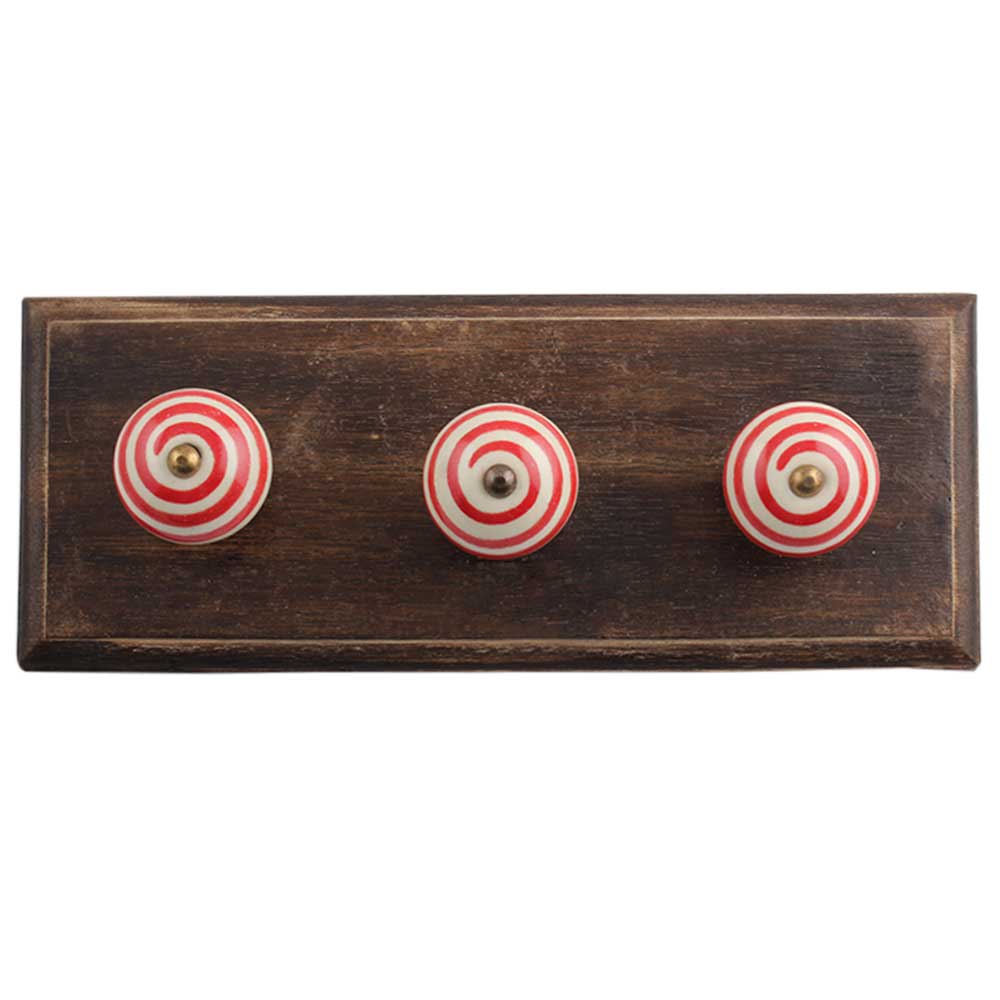 Cream Red Strip Wooden Hooks . A Perfect Complement to the Soft Tone of the Wood are these White Traditional Hat &Amp; Coat Hook Made of Genuine Porcelain and Brass. It can be use to Hang Jewellery, Leashes, Towels, Scarves, Light Weight Sweaters, Caps Etc.
