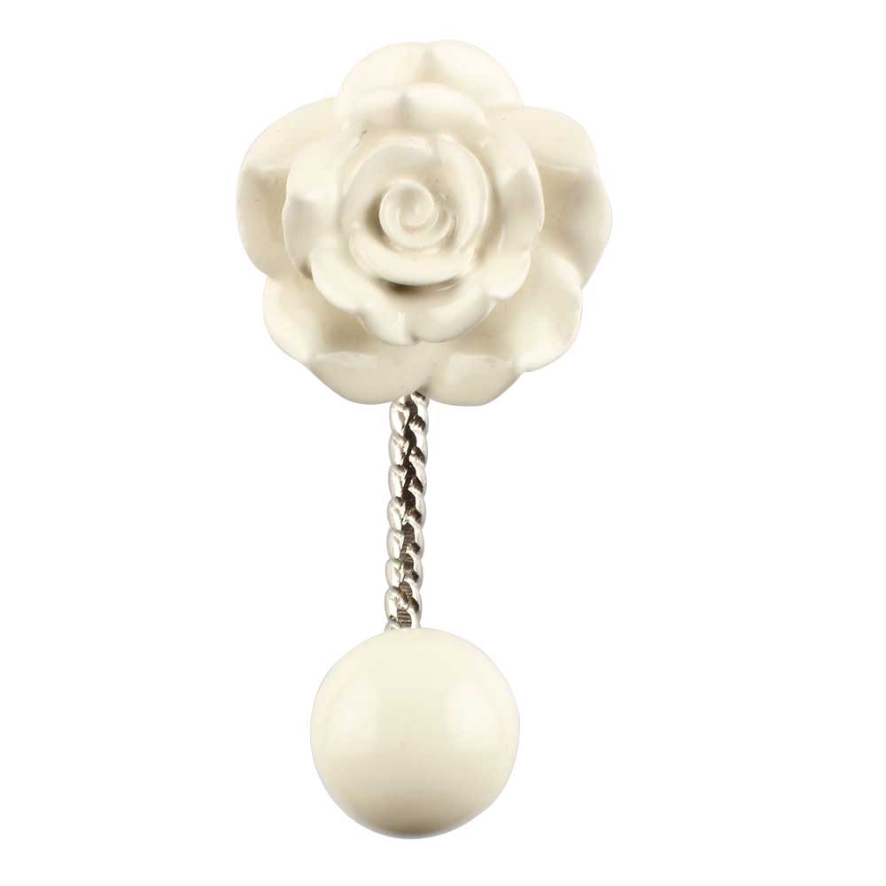 Cream Rose Flower Ceramic Wall Hook in Silver Fitting. When Put on Wall or Cabinet It is An Art in Itself. This Hook is Strong Enough to Hold Your Keys, Tea Cups, Hand Towels, Cloths etc.