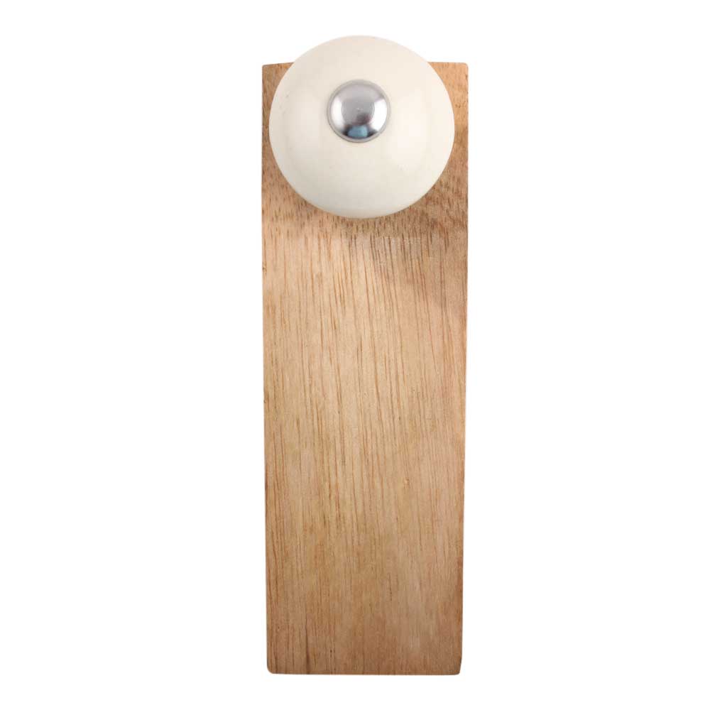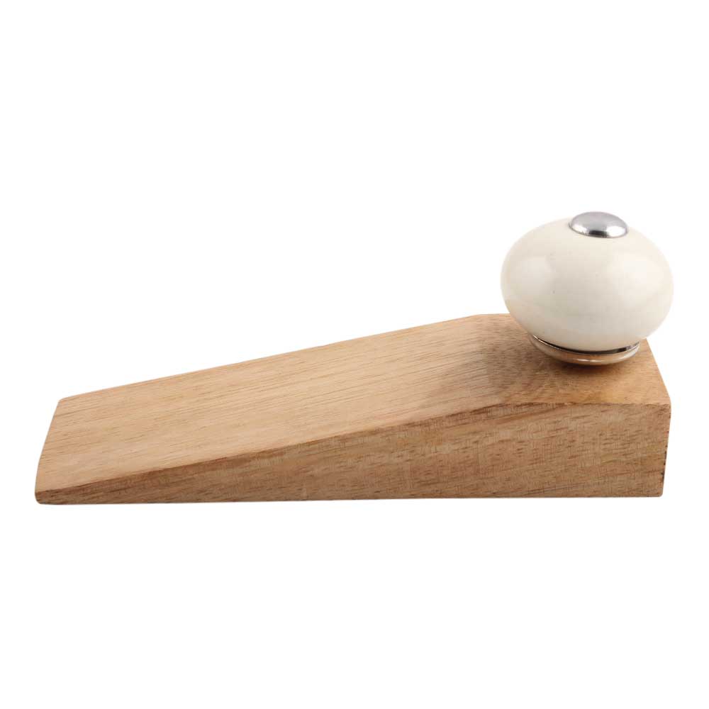 Handmade Ceramic and Wooden Door Stopper.Wooden Door Stopper with a Ceramic Knob to Carry it Easily. This Wooden Door Stopper has Glue Dots under it to Ensure that it does not Slip. It is Handmade by the Craftsmen of India and this Innovative Door Stopper won't Disappoint You.