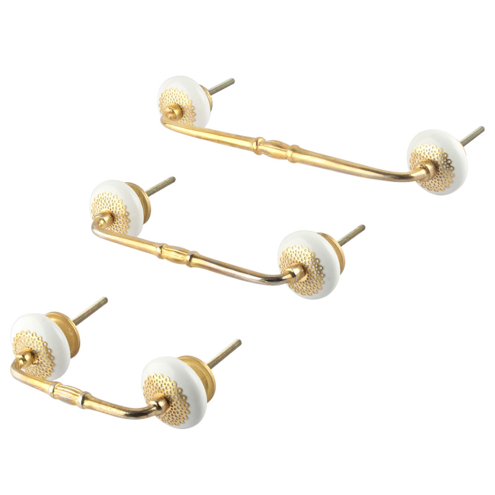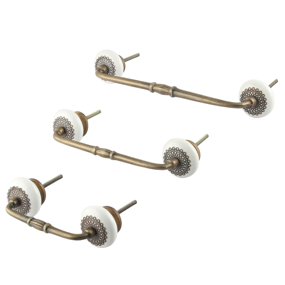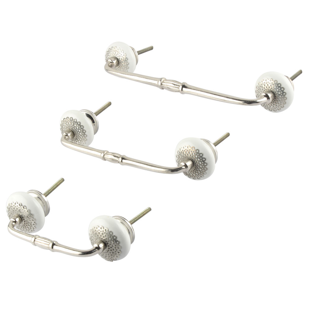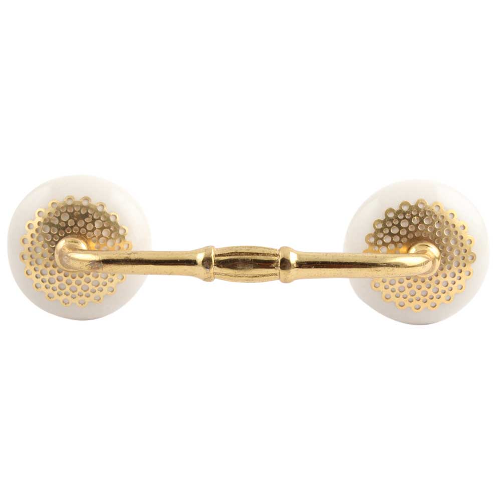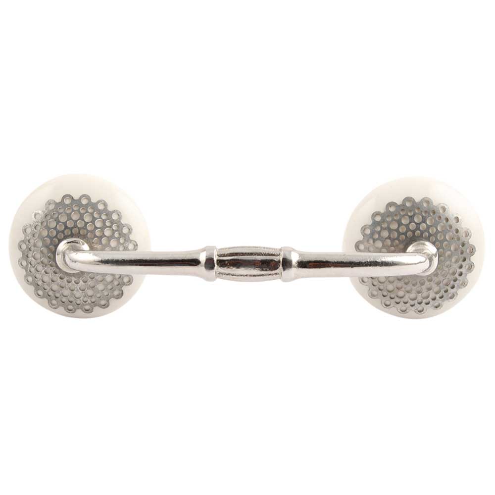 Cream Strewn Flat Ceramic-02 Bridge Handle. Ideal for Drawer, Dresser, Cabinet, Wardrobe, Cupboard and Almirah.