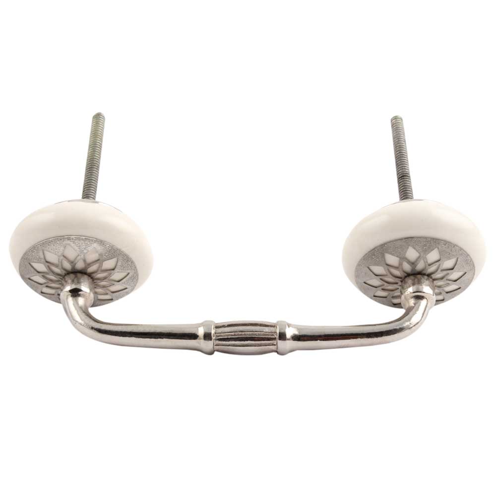 Cream Strewn Flat Ceramic-03 Bridge Handle. Ideal for Drawer, Dresser, Cabinet, Wardrobe, Cupboard and Almirah.