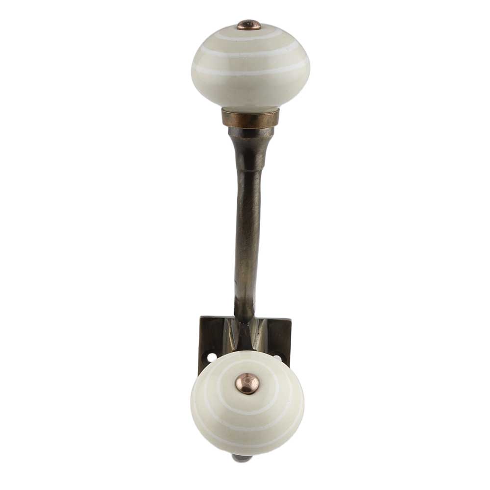 The Cream Striped Small Ceramic Antique Iron Hook is the perfect fusion of understated charm and practical design. Handcrafted with a delicate cream-striped ceramic knob and set in a classic antique-finish iron base, this petite wall hook brings a refined, vintage touch to any room. Ideal for spaces that value simplicity with character, it offers both functional organization and aesthetic appeal in a compact form.