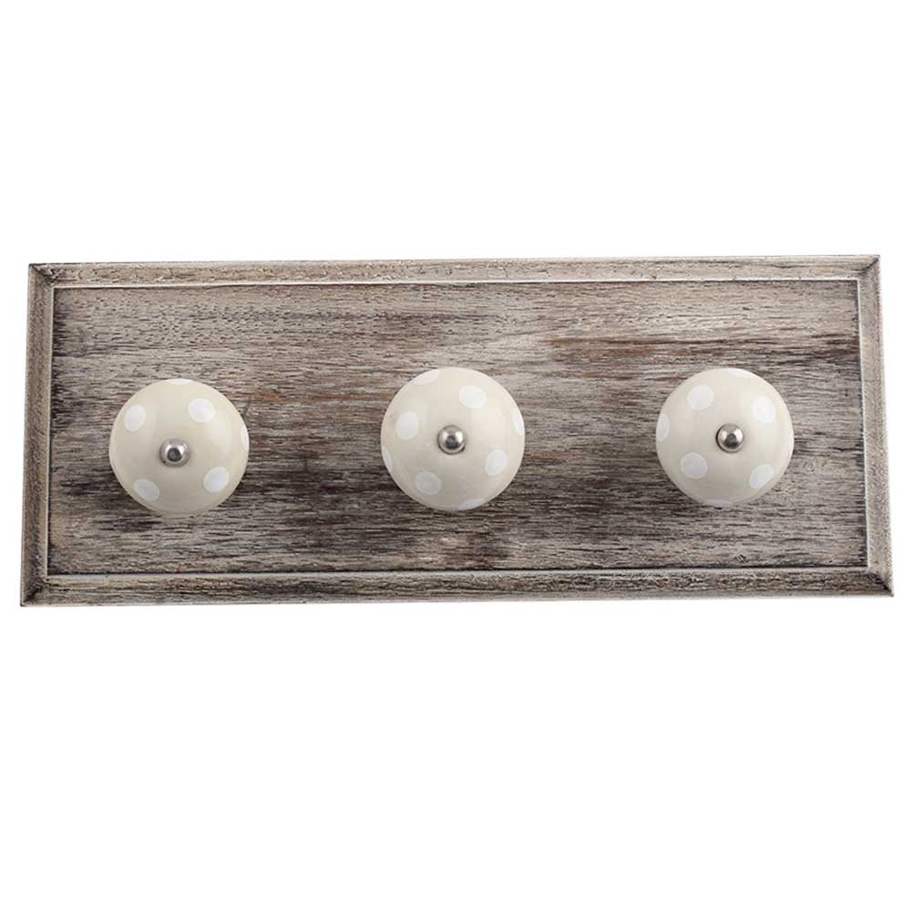 Cream White Dot Wooden Hooks. A Perfect Complement to the Soft Tone of the Wood are these White Traditional Hat &Amp; Coat Hook Made of Genuine Porcelain and Brass. It can be use to Hang Jewellery, Leashes, Towels, Scarves, Light Weight Sweaters, Caps Etc.