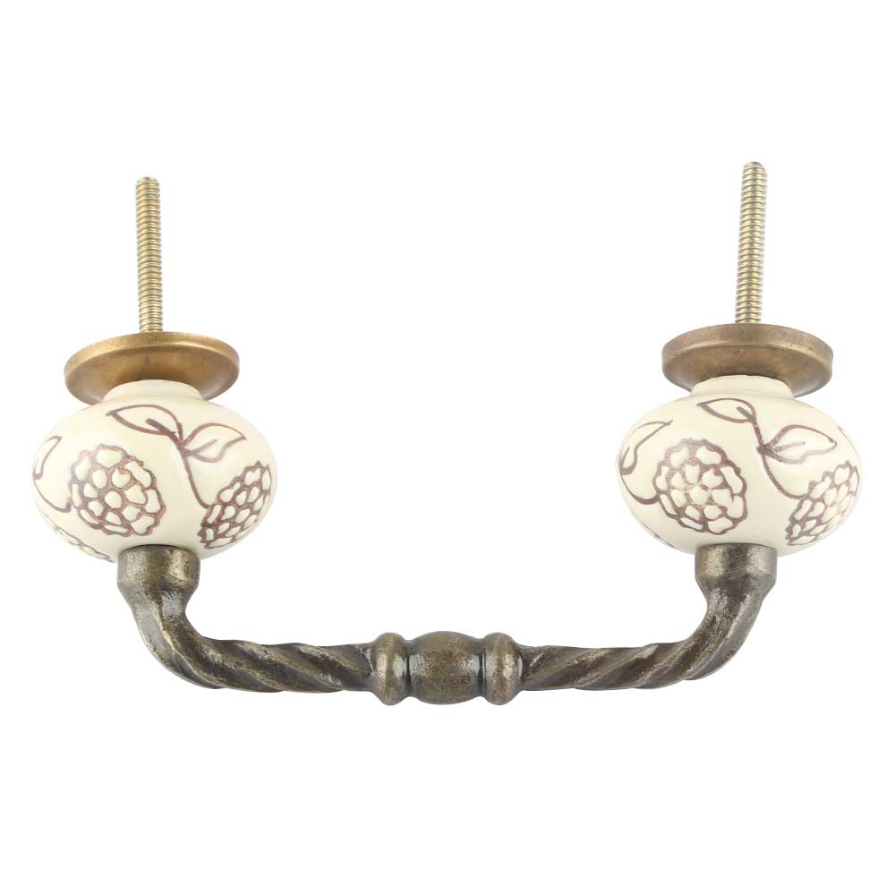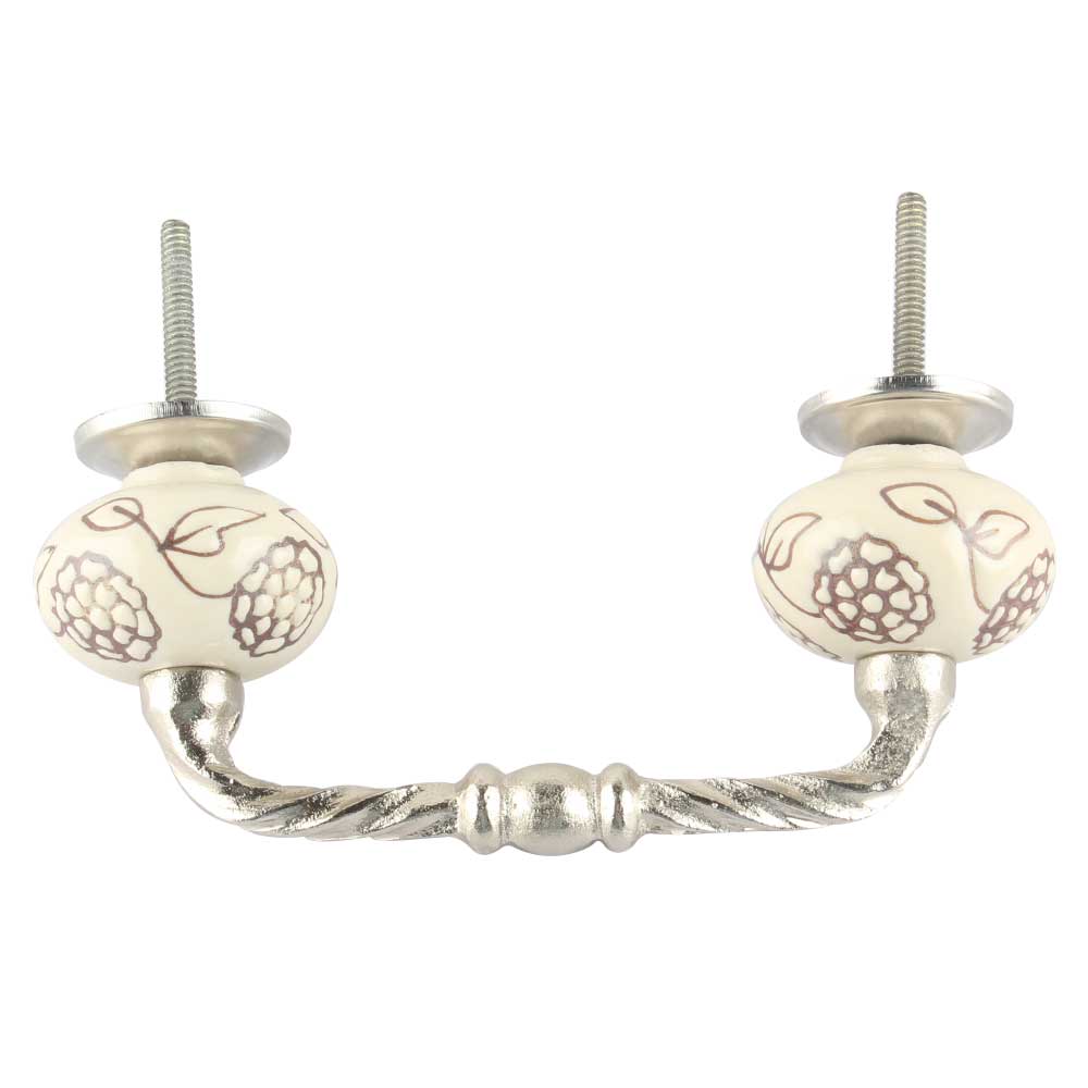 Cream With Brown Marigold Etched Ceramic Cut Bridge Handle. Ideal for Drawer, Dresser, Cabinet, Wardrobe, Cupboard and Almirah etc.