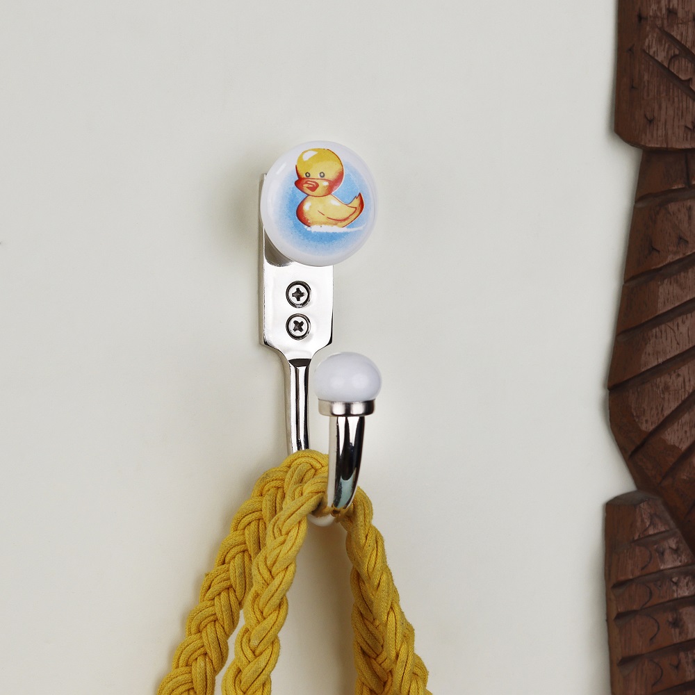 Material: Hand-painted ceramic duck head with zinc alloy hook Finish: Glossy ceramic top with matte zinc base Installation: Easy single-screw mount (hardware included)
