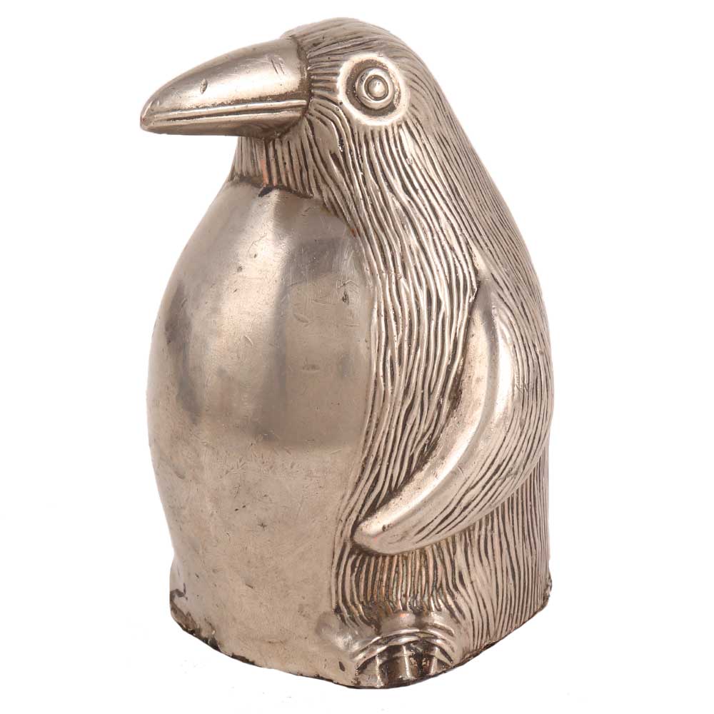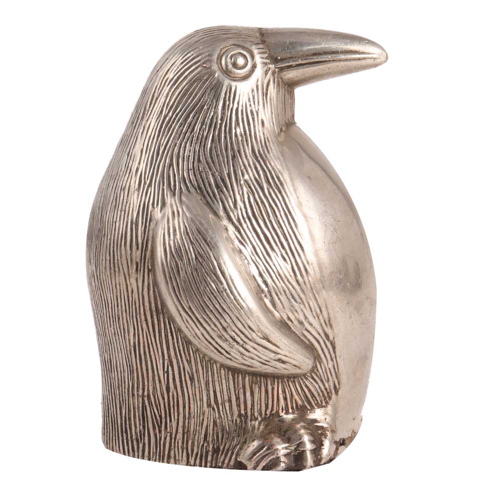 This adorable silver metal penguin has lined feather detail and plenty of charm, making it the ideal conservationist gift or mid-century shelf sitter. Home Decoration, Room Decoration, Living Room, Gift for Her and Gift for Him This lovely silver metal ornamental penguin can also be used as a paperweight. Elegantly designed.