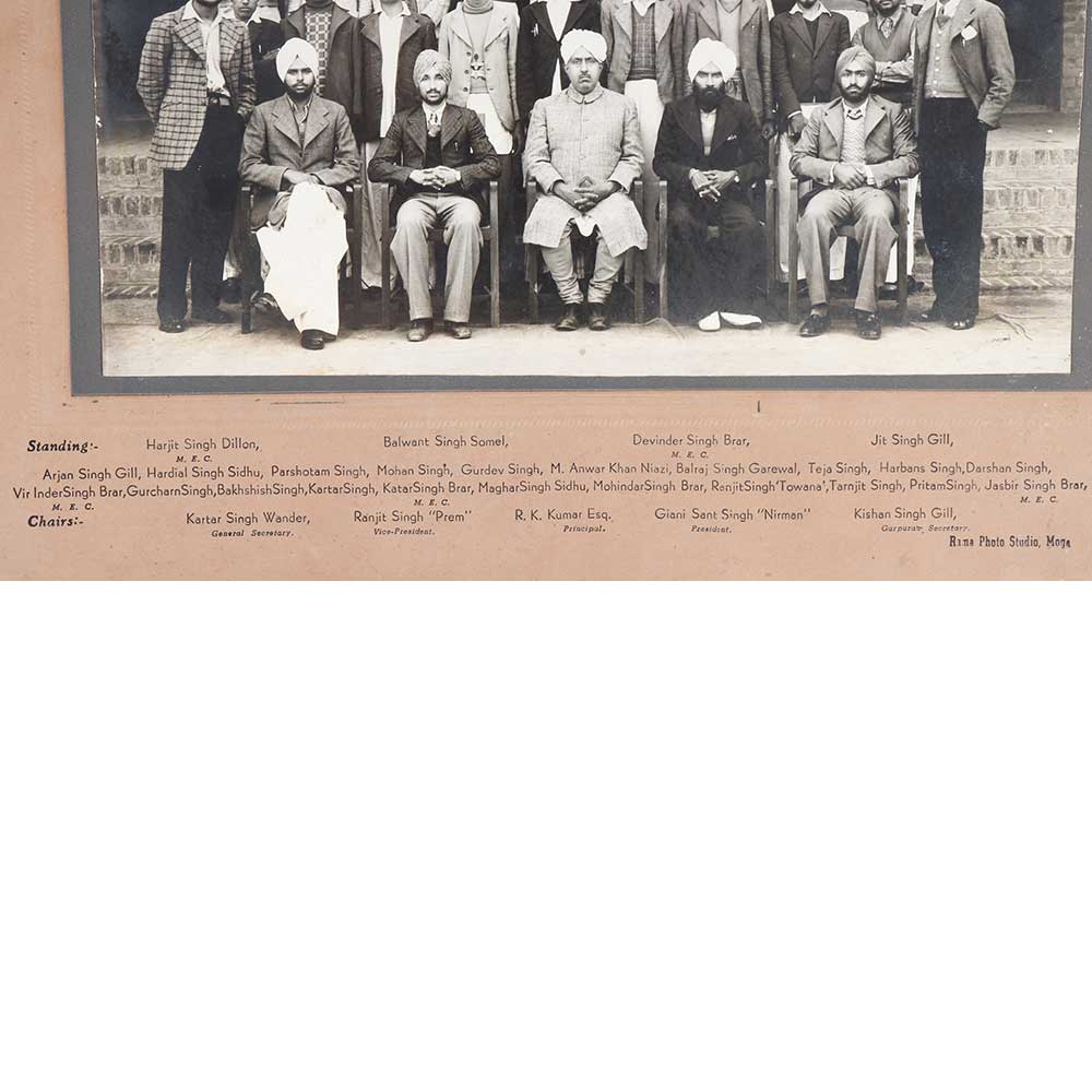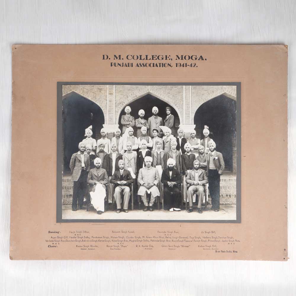 Step back in time with this one-of-a-kind vintage photograph capturing the D.M. College Punjabi Association in 1941-42. This striking black and white image immortalizes a group of students standing together on the cusp of history. For history enthusiasts, this photograph offers a tantalizing portal into student life in India during the 1940s, just before independence from Britain. These young scholars exude a spirit of unity and purpose, unaware of the monumental societal changes ahead. The photograph provides a poignant representation of the dreams and potential of Indian youth during this significant historical period. Add this rare photographic gem to your collection for an authentic and mesmerizing glimpse into the past. Let this image spark your imagination about the stories and connections behind it.