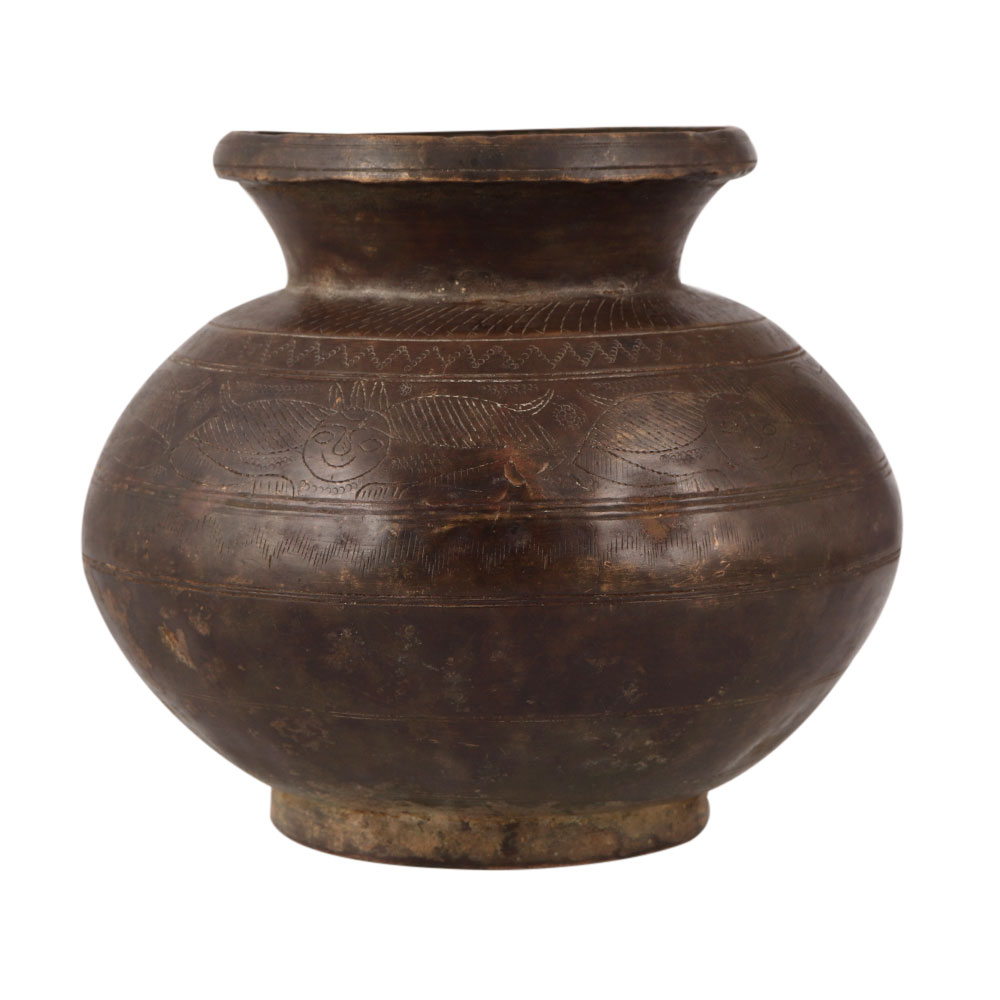 Embrace tradition and elevate the ambiance with a captivating brass water pot. This brass water pot with antique dark brown finish is an epitome of traditional craftsmanship and elegance. This masterpiece is handcrafted by skilled Indian artisans, showcasing their expertise and attention to detail. Its enchanting designs engraved on the surface add a touch of opulence, making it an irresistible piece for decoration. Since centuries, this brass water pot has held an important place in Indian households. It has been used to offer water to deities, the sun god, and the Shivling. It serves as a vessel to store sacred water from the holy river Ganga, adding sanctity to rituals, auspicious functions, and havans in Hindu traditions. Beyond its spiritual significance, this water pot doubles as an exquisite indoor flower pot, enhancing the decor of your living room or patio garden. The rich heritage and cultural symbolism make it a meaningful and memorable gift for your loved ones on special occasions, festivals, or auspicious events.