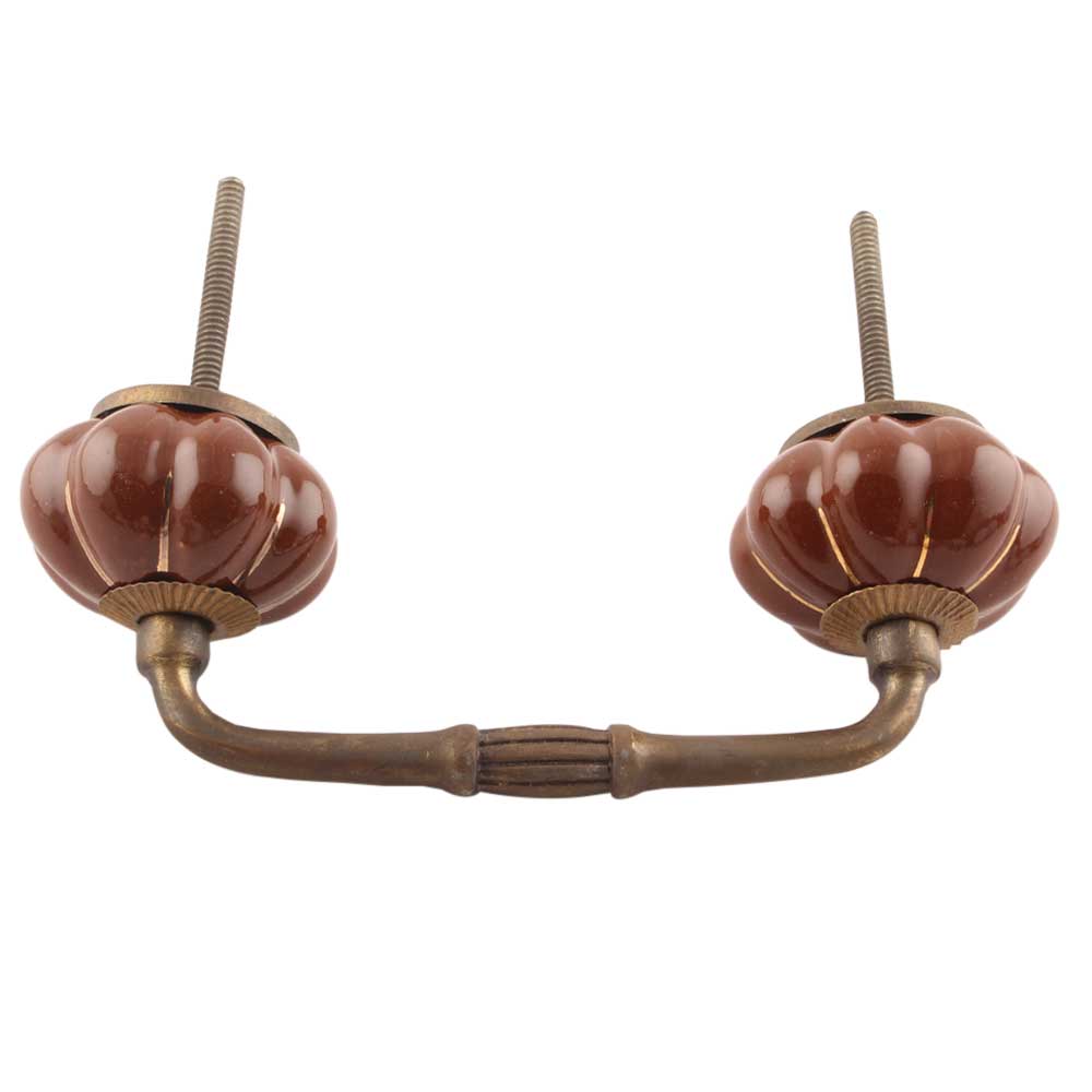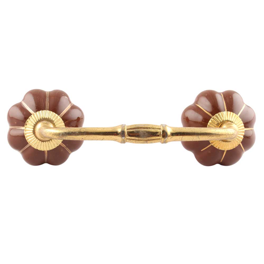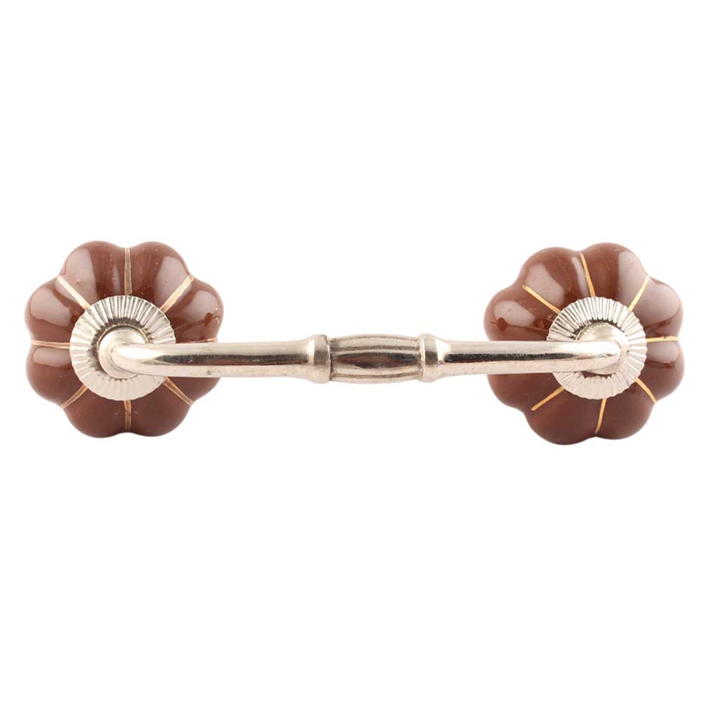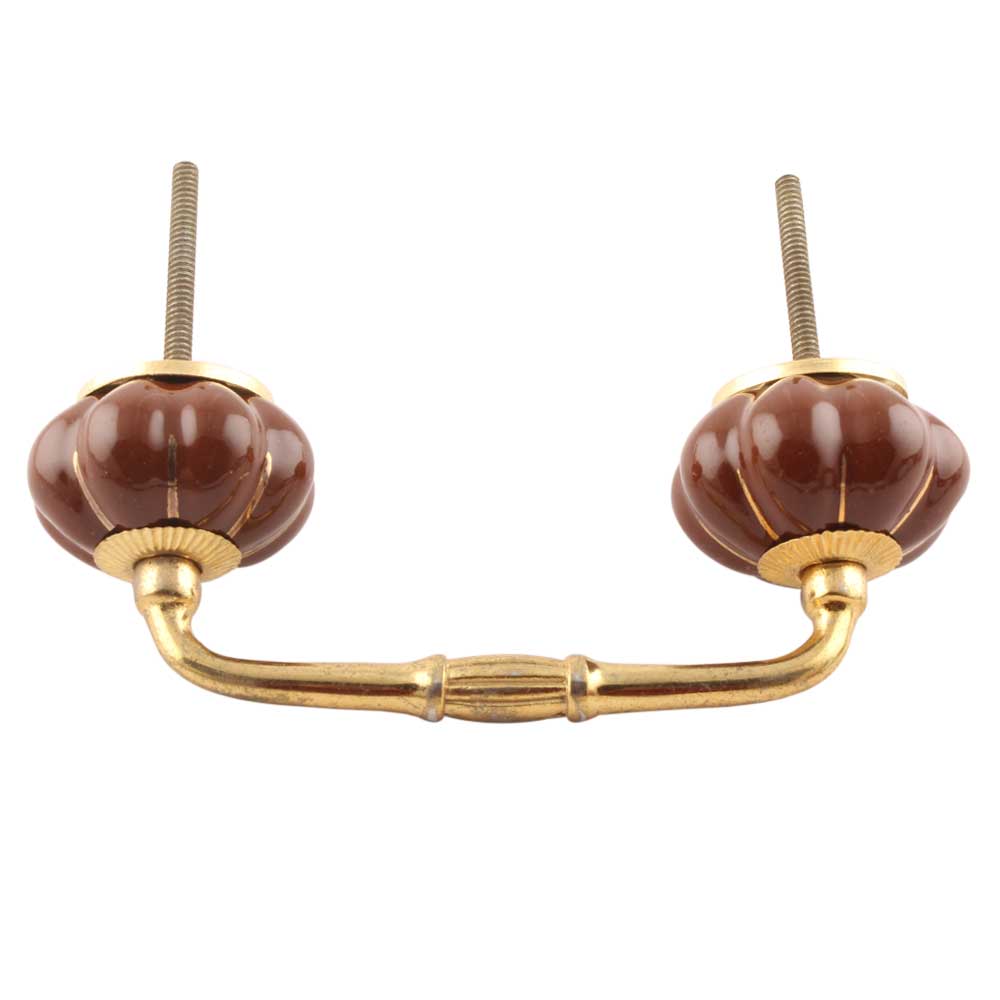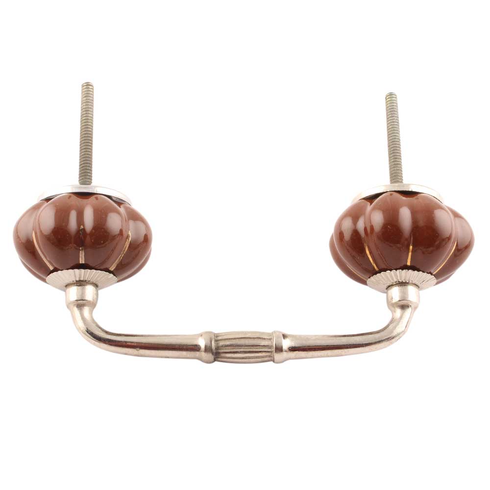 Dark Brown With Golden Line Ceramic Melon Bridge Handles. Ideal for Drawer, Dresser, Cabinet, Wardrobe, Cupboard and Almirah etc.