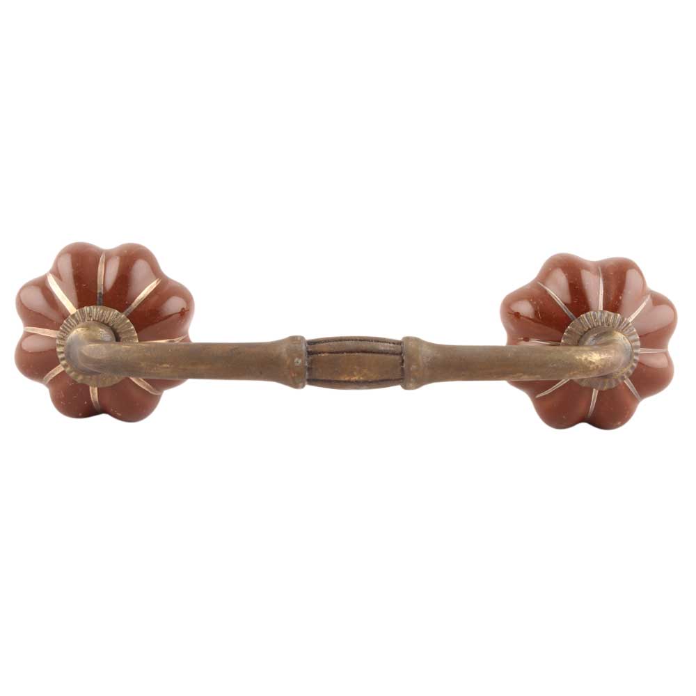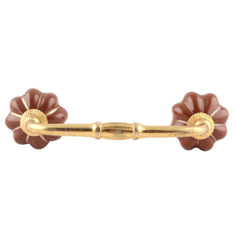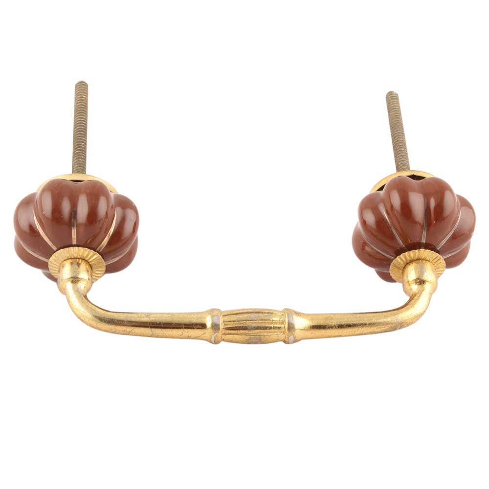 Dark Brown With Silver Line Medium Ceramic Melon Bridge Handles. Ideal for Drawer, Dresser, Cabinet, Wardrobe, Cupboard and Almirah etc.