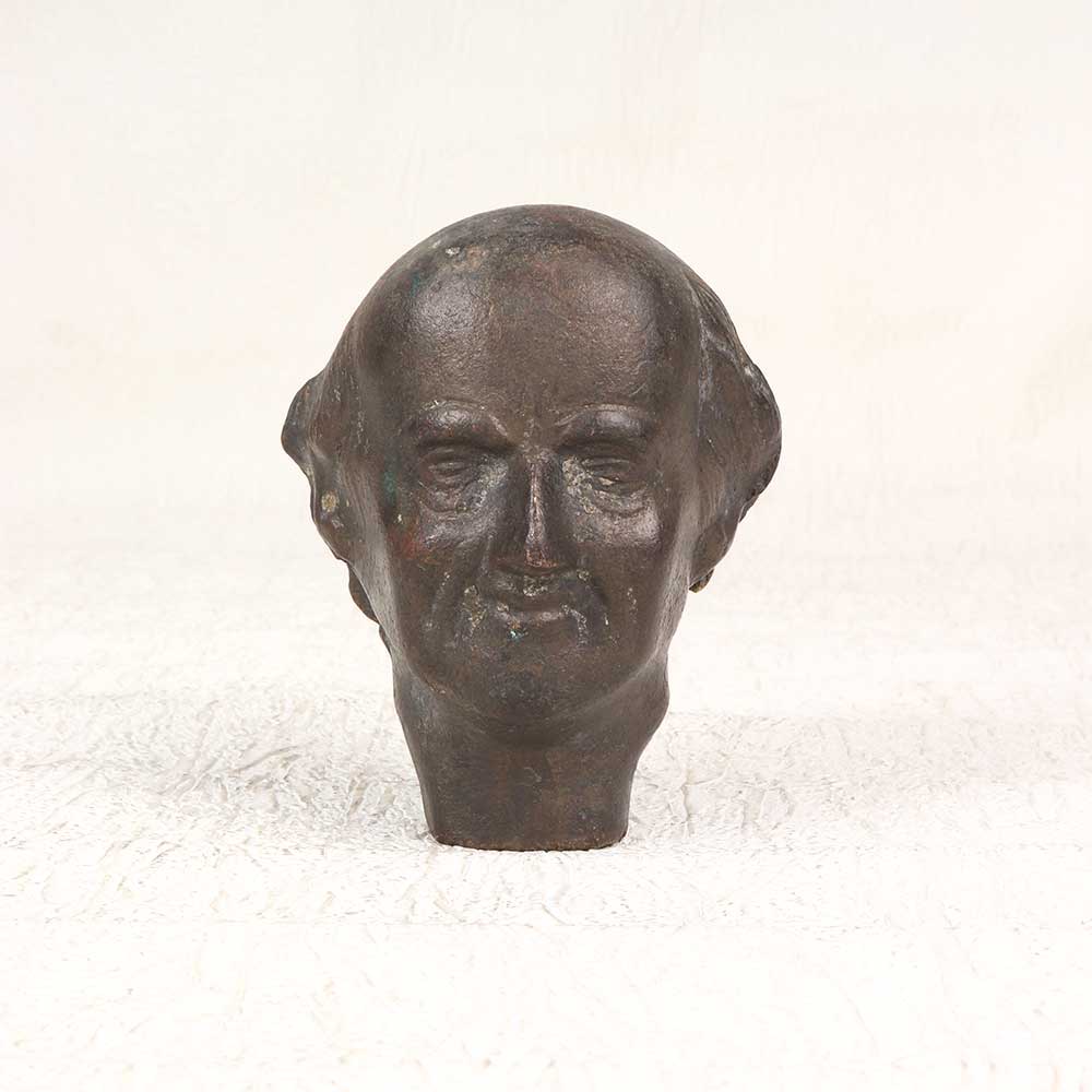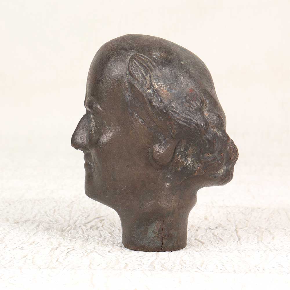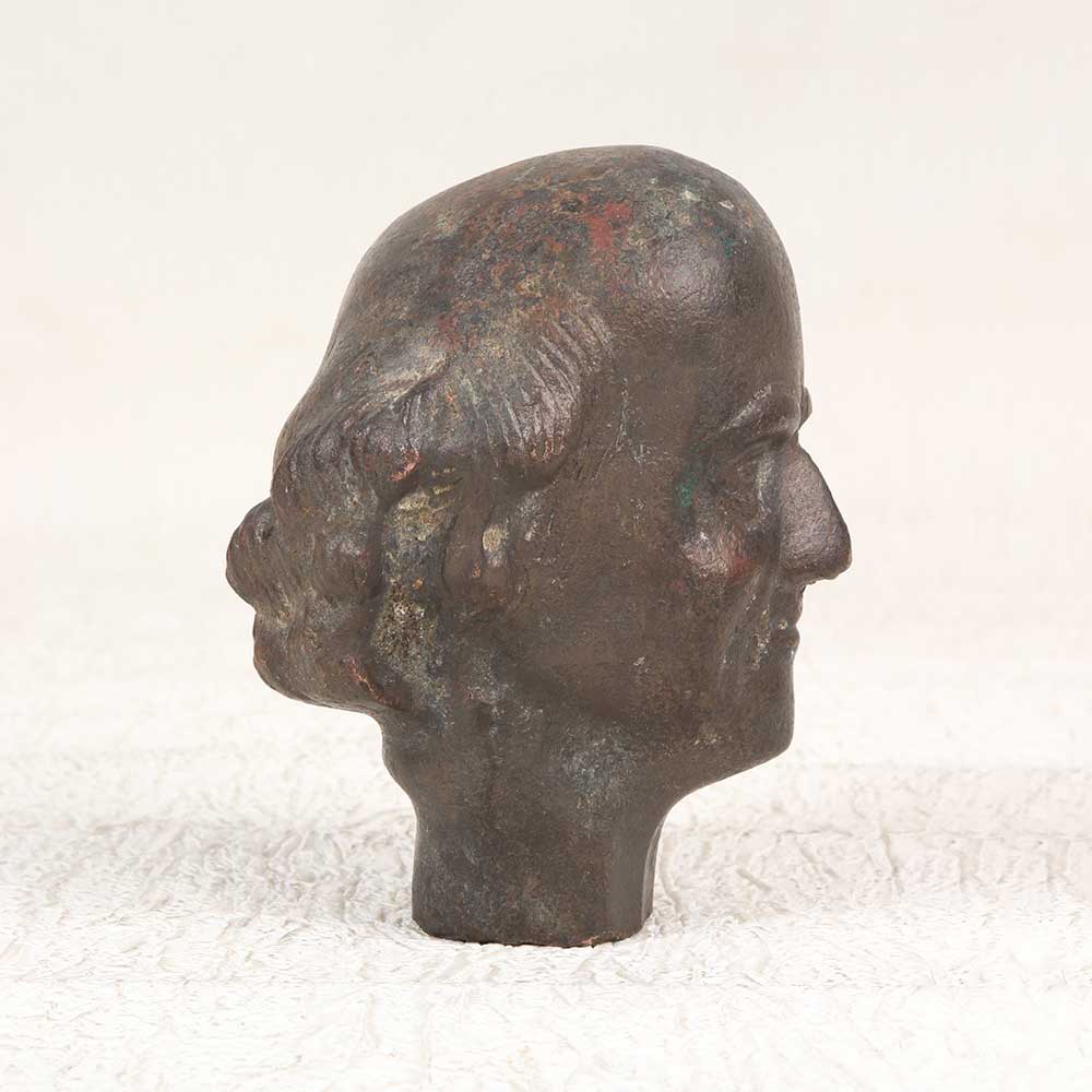 Step back in time with this dark finished vintage brass male head statue. Exquisitely crafted, this European-style bust brings neoclassical elegance to any space. This antique-inspired statue reflects the remarkable sculpting skills of past eras. The precise chisel work shapes each curve and angle to capture the essence of the male form. Shadows dance across the strong brow, chiseled cheekbones, and stoic jawline. Ideal for sophisticated collectors, this vintage brass head statue makes a striking decorative accent. Place it in an entryway, library, or study to add old-world intrigue. Or display it in the living room to impress and inspire guests. Let this gorgeously crafted vintage male bust bring a touch of neoclassical European art into your home. A timeless symbol of strength and dignity.