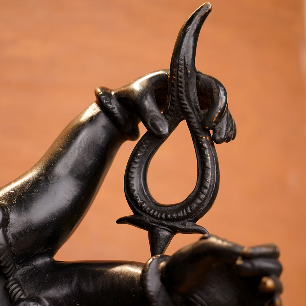 Commanding attention with his regal presence, this vintage brass Dancing Ganesha statue is a stunning work of sacred art. Meticulously crafted by skilled artisans, it captures the divine energy of the elephant-headed deity in remarkable detail. As the remover of obstacles and bringer of prosperity, Lord Ganesha is revered throughout the Hindu faith. Inviting his powerful energies into your home, this statue can help clear the path for new beginnings, abundance, and spiritual growth. Place it in your meditation space, home office, or entryway to cultivate an atmosphere of tranquility and possibility. With its vintage aesthetic and exquisite craftsmanship, the Dancing Ganesha also makes a stunning decorative accent. Whether you're a devoted practitioner or simply appreciate fine art, this statue is a true conversation piece that will infuse your space with sacred beauty and timeless elegance.