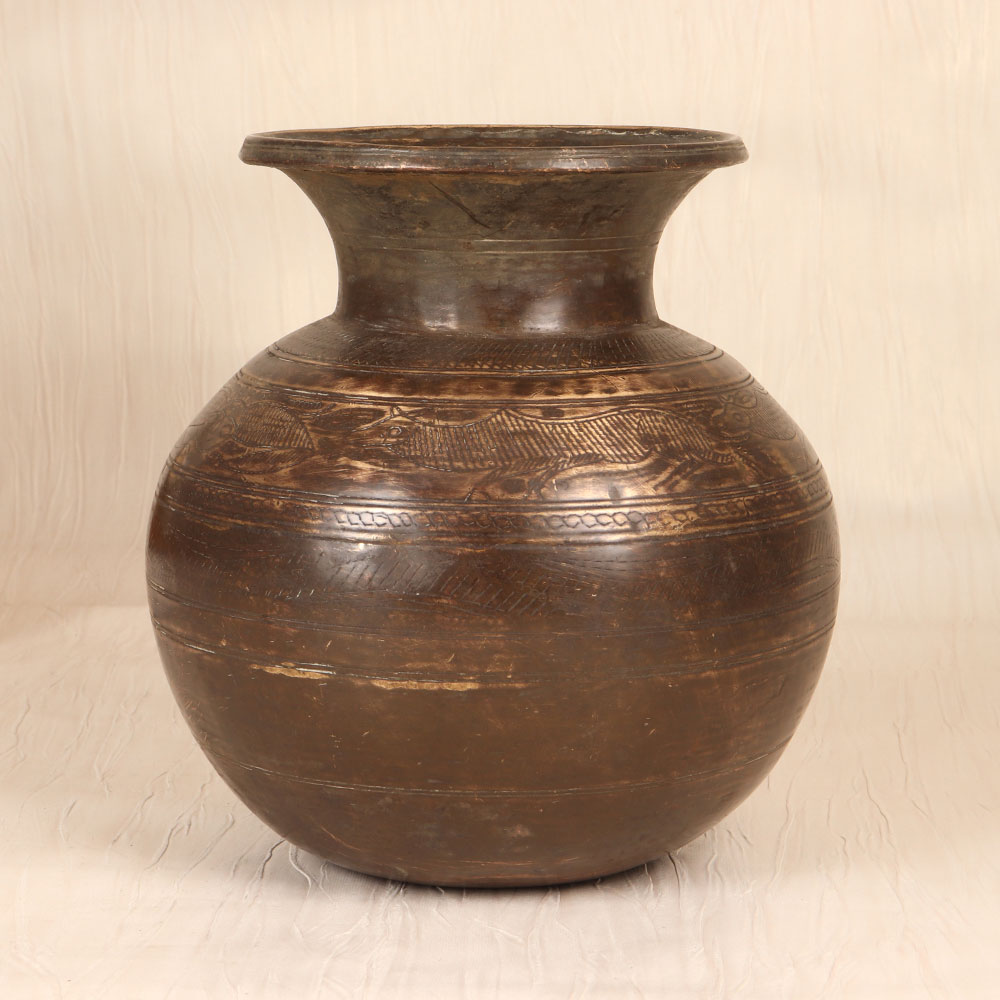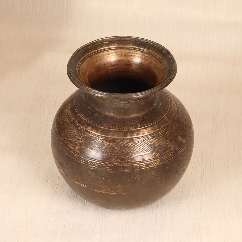 Elevate your spiritual practice and infuse your home with the timeless energy of ancient traditions with this stunning vintage brass holy water pot. Meticulously crafted by skilled artisans in Gujarat, India, this heirloom-quality piece features intricate engraving that showcases the region's renowned artistic heritage. Durable and built to last, this holy water pot is perfect for daily use in your puja room or as a beautiful centerpiece in your living space. Fill it with blessed holy water to purify the air, or use it to hold flowers, incense, or other offerings during your rituals. The elegant design complements a variety of decor styles, seamlessly blending traditional and modern elements. Whether you're seeking to deepen your personal spiritual journey or looking to add a touch of timeless beauty to your home, this vintage brass holy water pot is an investment that will be cherished for generations. Bring the tranquil energy of ancient traditions into your life and elevate your space with this exquisite handcrafted treasure.