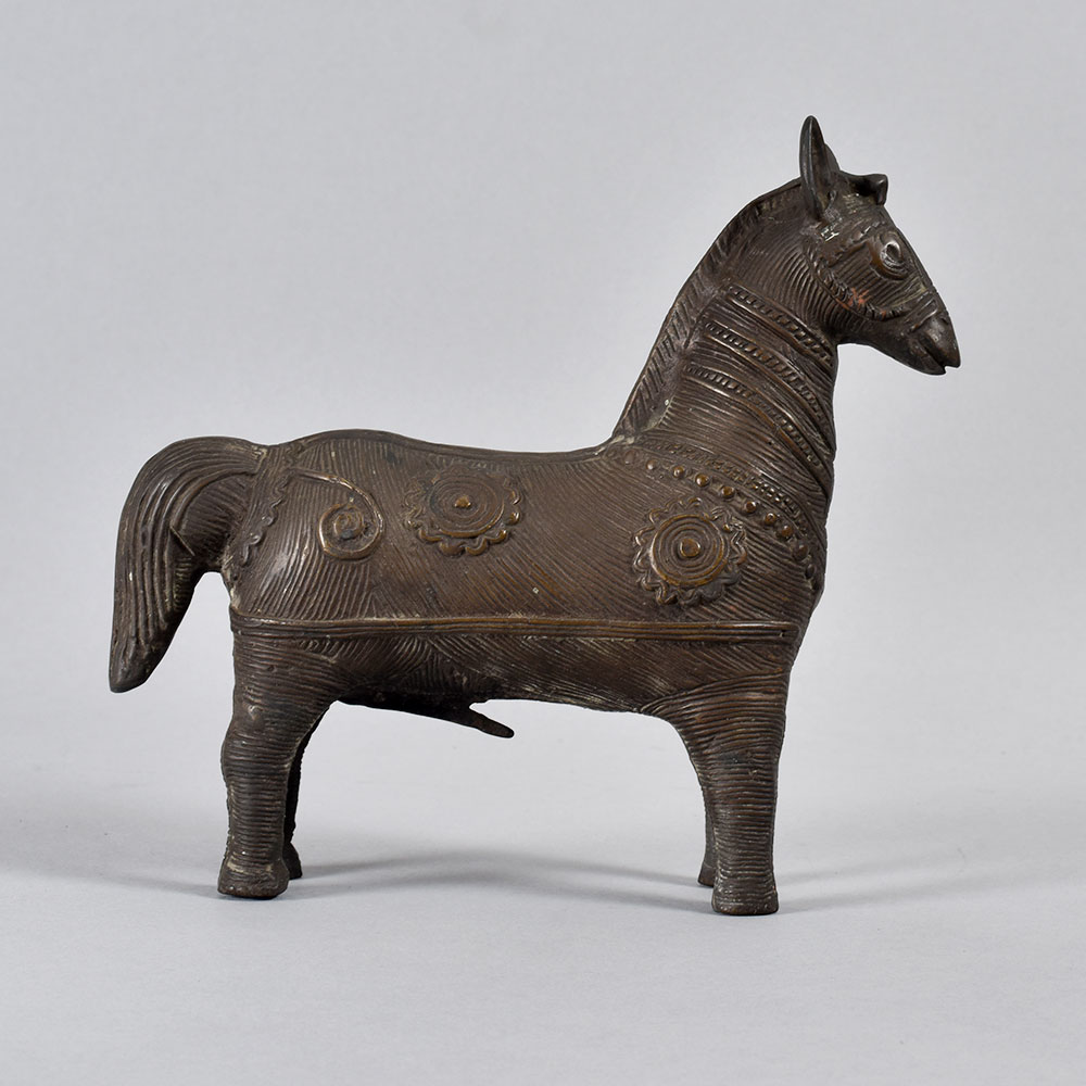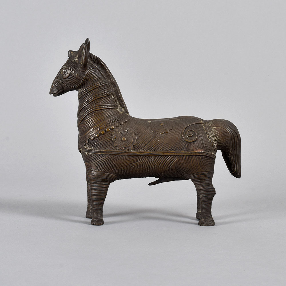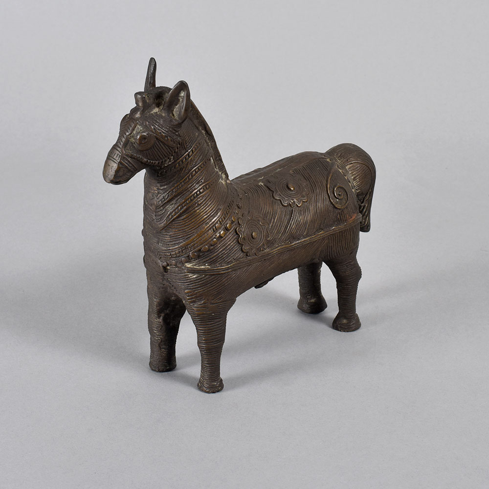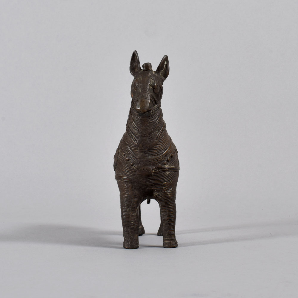 Gaze upon the powerful, regal form of this brass Tribal horse statue, and let its timeless beauty transport you to the heart of the ancient Bastar region. Crafted with meticulous attention to detail, this striking piece embodies the rich cultural heritage and artistic mastery of India's indigenous tribes. Invite the spirit of ancient traditions into your living space with this captivating Tribal horse statue. Let it inspire awe and wonder, transporting you and your guests to a world of timeless elegance and cultural significance. Display it proudly, and watch as its timeless beauty elevates the ambiance of any room. Whether you're a collector of fine art, a lover of cultural artifacts, or simply seeking to add a touch of global flair to your decor, this brass Tribal horse statue is a must-have addition to your home. Embrace the captivating essence of Bastar's artistic legacy, and let this magnificent piece become a cherished centerpiece in your sanctuary.