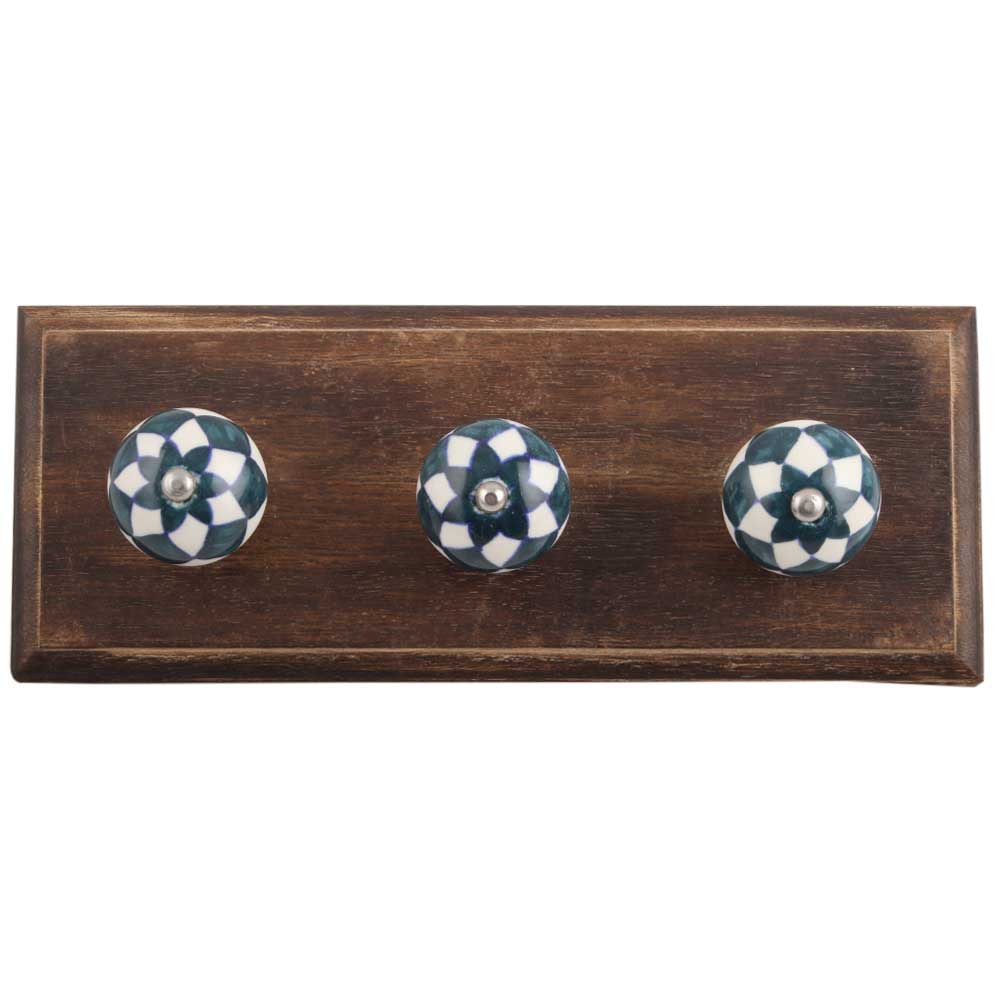 Dark Green Check Ceramic Wooden Hook. A Perfect Complement to the Soft Tone of the Wood are these White Traditional Hat & Coat Hook Made of Genuine Porcelain and Brass. It can be use to Hang Jewellery, Leashes, Towels, Scarves, Light Weight Sweaters, Caps Etc.