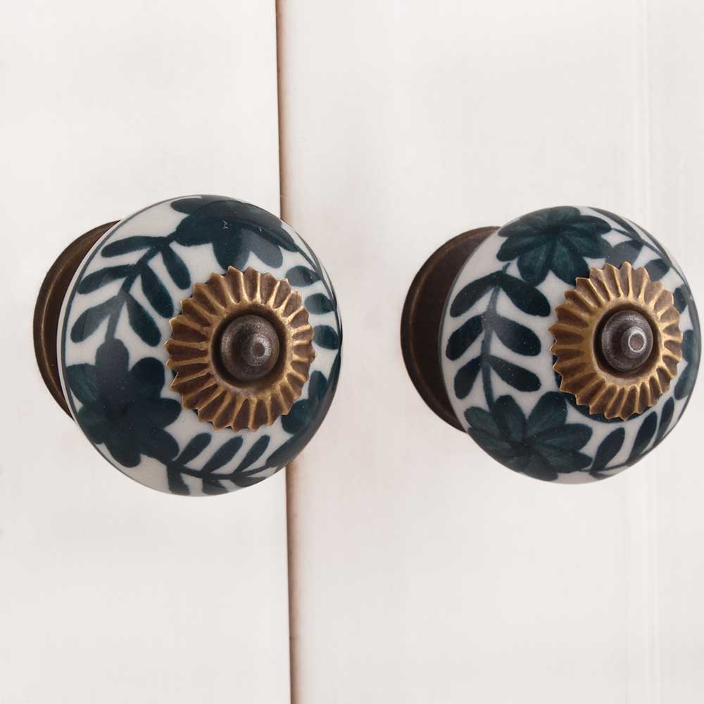 The deep green base of the Dark Green Flower Ceramic Knob provides a grounded, nature-inspired vibe. The delicate floral design contrasts beautifully with the rich green background, striking a balance between elegance and nature.