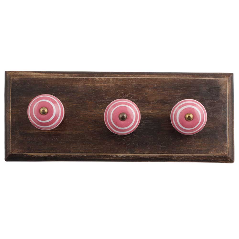 Dark Pink White Strip Wooden Hooks. A Perfect Complement to the Soft Tone of the Wood are these White Traditional Hat &Amp; Coat Hook Made of Genuine Porcelain and Brass. It can be use to Hang Jewellery, Leashes, Towels, Scarves, Light Weight Sweaters, Caps Etc.