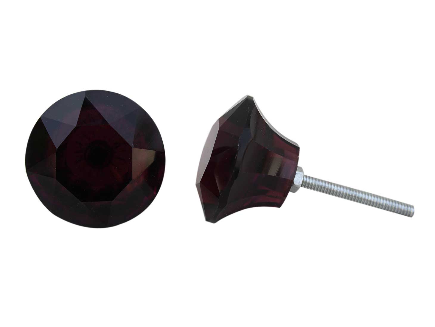 Dark Purple Diamond Glass Knobs, Big. Ideal for Drawer, Dresser, Cabinet, Wardrobe, Cupboard and Almirah.