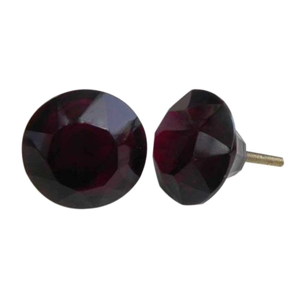 Dark Red Diamond Glass Knobs, Large. Ideal for Drawer, Dresser, Cabinet, Wardrobe, Cupboard and Almirah.