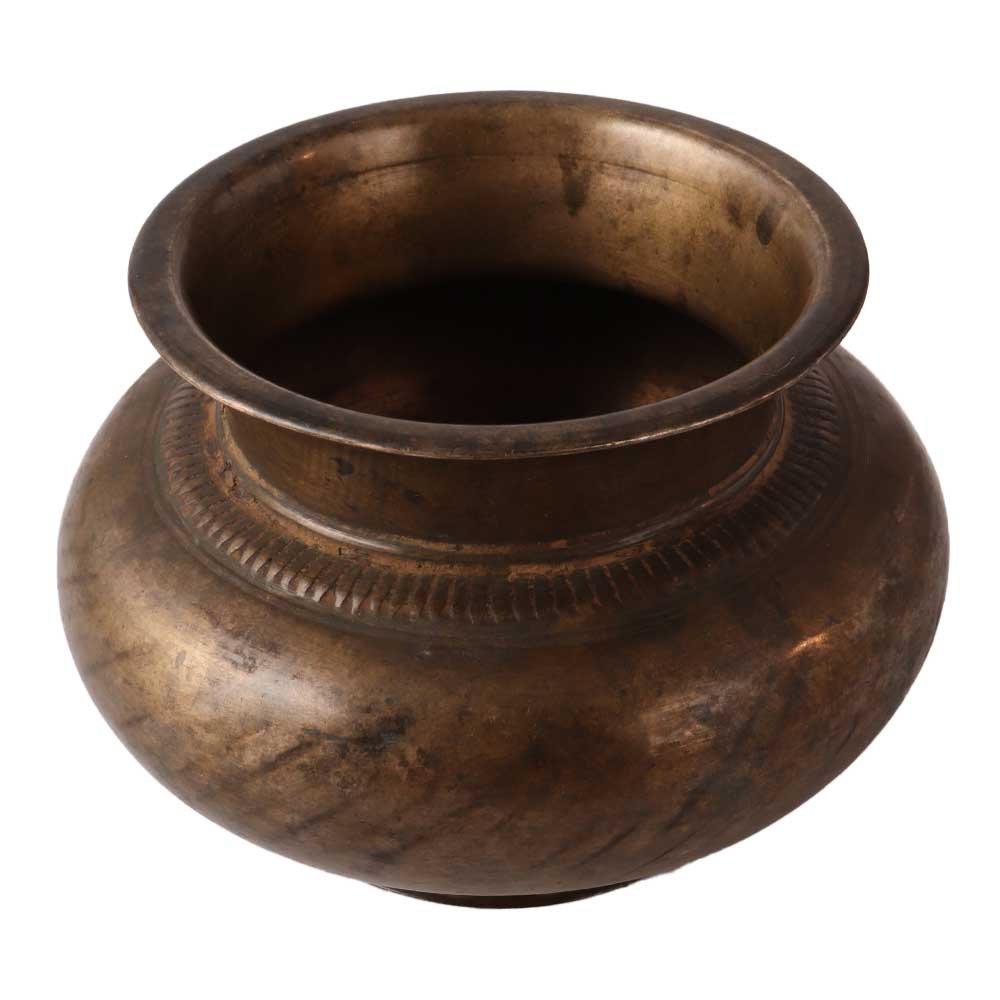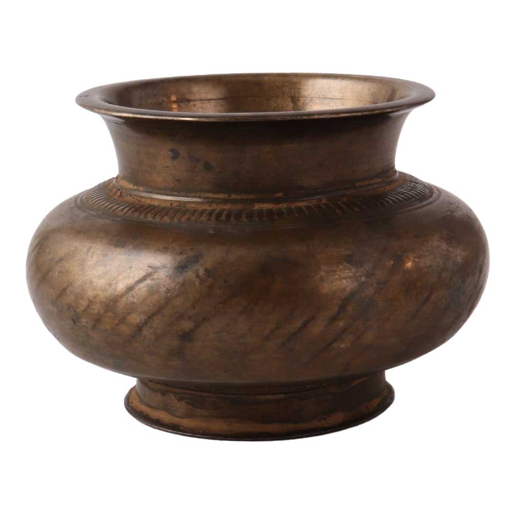 A brass holy water pot with carving work is a decorative and functional religious item that is used to hold holy water in a church or home. The pot is typically made of brass, a durable and attractive metal that is resistant to corrosion and tarnishing. The carving work on the pot often depicts religious symbols or scenes, such as crosses, saints, or angels. These carvings are usually intricate and detailed, and are often done by skilled artisans. The pot is often used for blessings, such as when a priest sprinkles holy water on a person or object. It can also be used for personal devotion, such as when someone dips their fingers into the water and makes the sign of the cross. Overall, a brass holy water pot with carving work is a beautiful and meaningful addition to any church or home.