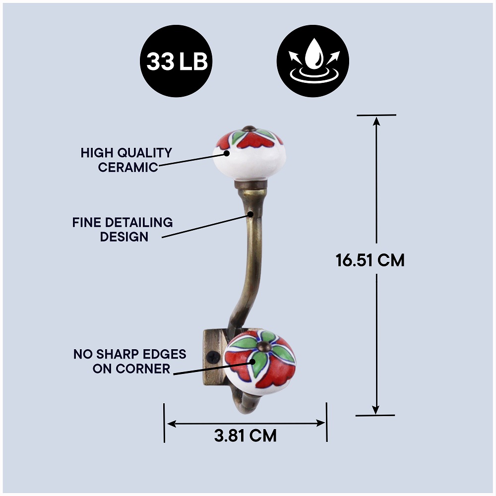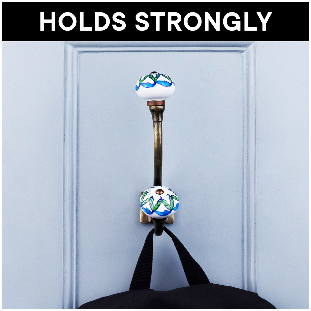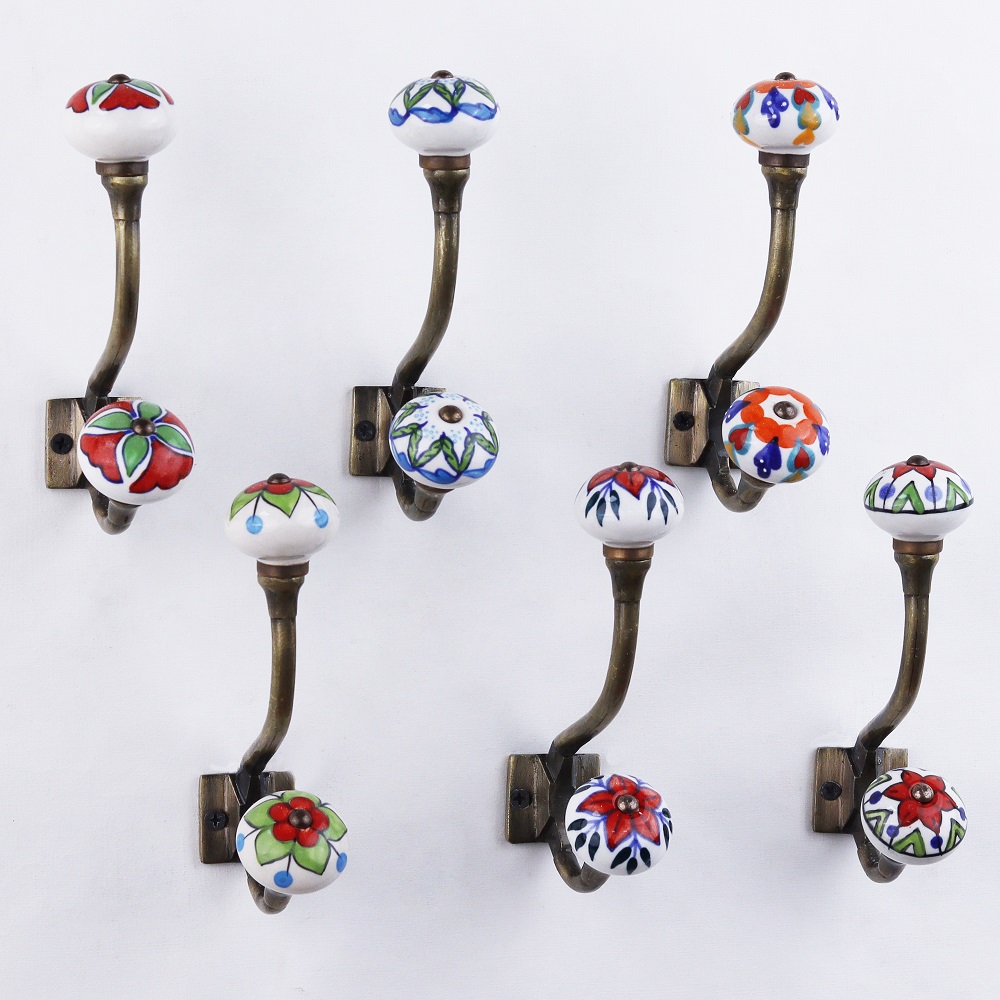 Decorative Ceramic Iron Wall Hooks 6 Pieces. When Put on Wall or Cabinet It Gives A Sturdy Look. This Hook is Strong Enough to Hold Your Cloths, Keys, Tea Cups, Coffee Mugs, Hand Towels Etc