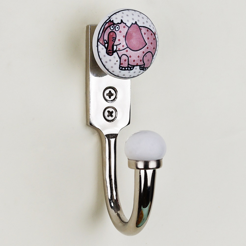 Decorative Elephant Ceramic and Zinc Kids Wall Hook – Single Piece