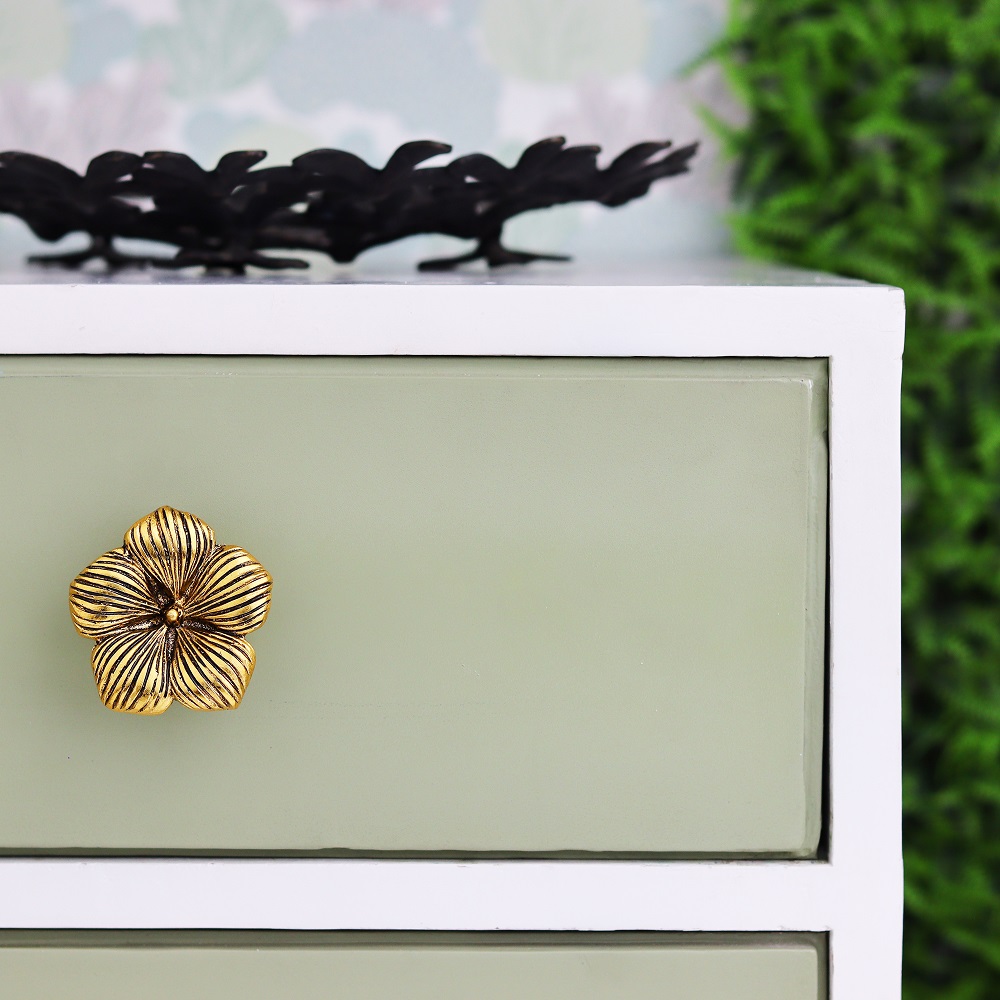 With its delicate flower motif, this drawer knob fits seamlessly into both modern and traditional interiors. It enhances the appearance of wooden, metal, and painted surfaces, making it a versatile choice for all types of furniture.