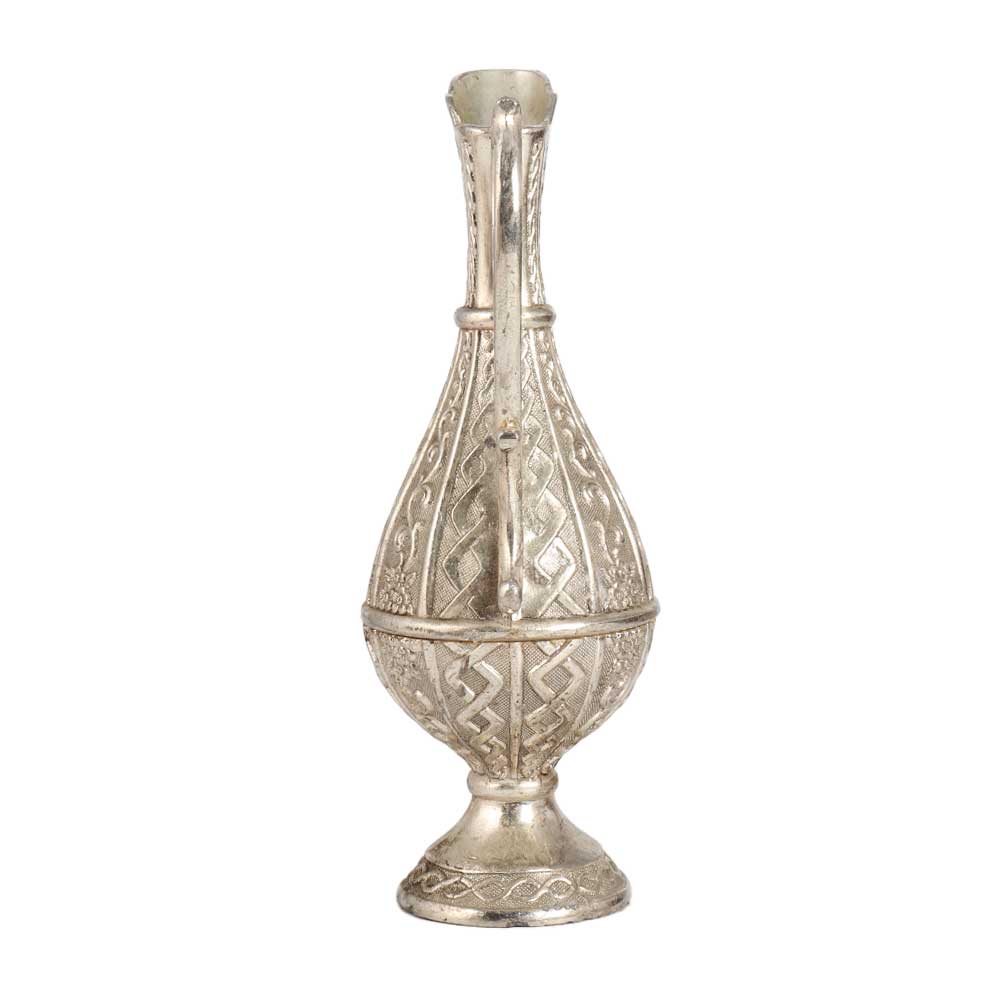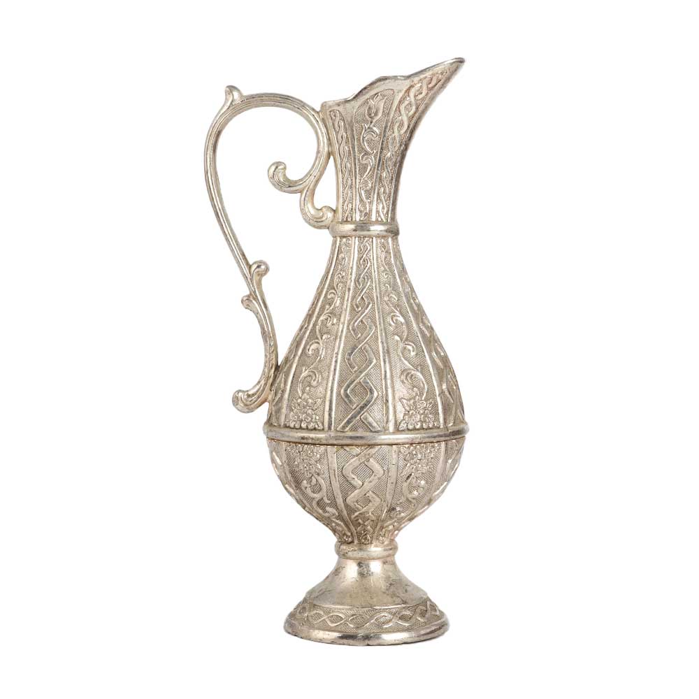 An engraved pitcher made of high quality metal to decorate your home or office. This jug has beautiful engravings and a decorative handle and stand at the bottom to keep it on the surface. Buy a handmade jug online, made by professional craftsmen in English art with their hands to deliver a remarkable impression for interior decoration. A metal pitcher is the first choice of vintage collectors and decor experts. Place this jug as a flower pot on the table, shelf or altar and it will become the center of attraction for your customers. This flower pot will remind you of your rich heritage with its antique finish. Gift this flower pot to your loved ones on special and festive occasions.