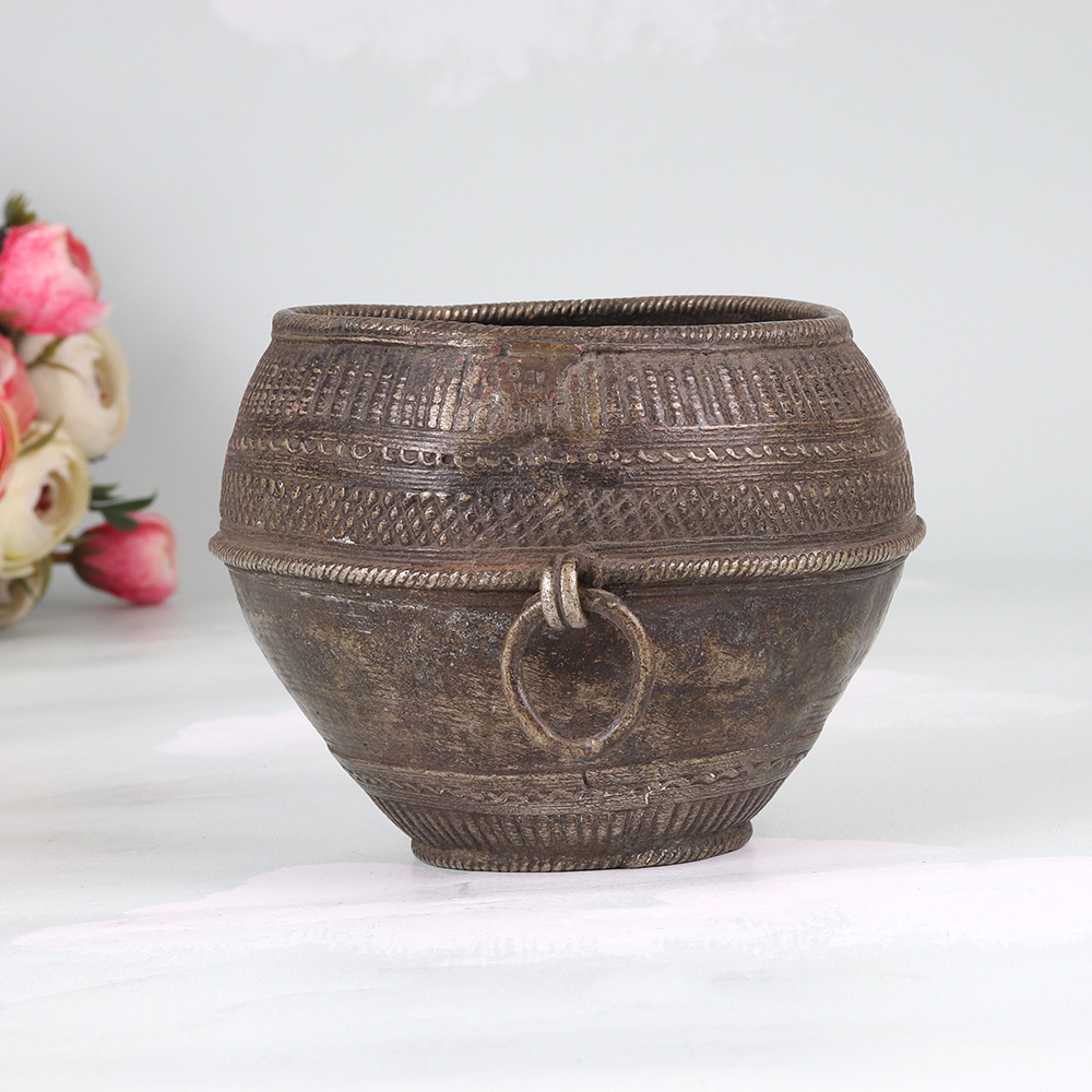 Discover the captivating allure of this vintage brass rice measurement bowl, a true testament to the rich culinary heritage of Odisha, India. Meticulously crafted by local artisans, each piece is a unique work of art, featuring intricate embossed patterns that add depth and character to any space. Beyond its decorative appeal, this bowl served an essential purpose in traditional Odiya kitchens - precisely measuring rice and grains to ensure perfect portions every time. The durable brass construction not only imparts a warm, rustic charm but also ensures this piece will be a cherished heirloom for generations to come. Whether you're a design enthusiast seeking to infuse your home with a touch of global flair or a lover of all things vintage, this rice measurement bowl is a must-have addition to your collection. Elevate your décor and connect with the rich cultural heritage of Odisha, India, with this timeless and versatile piece.