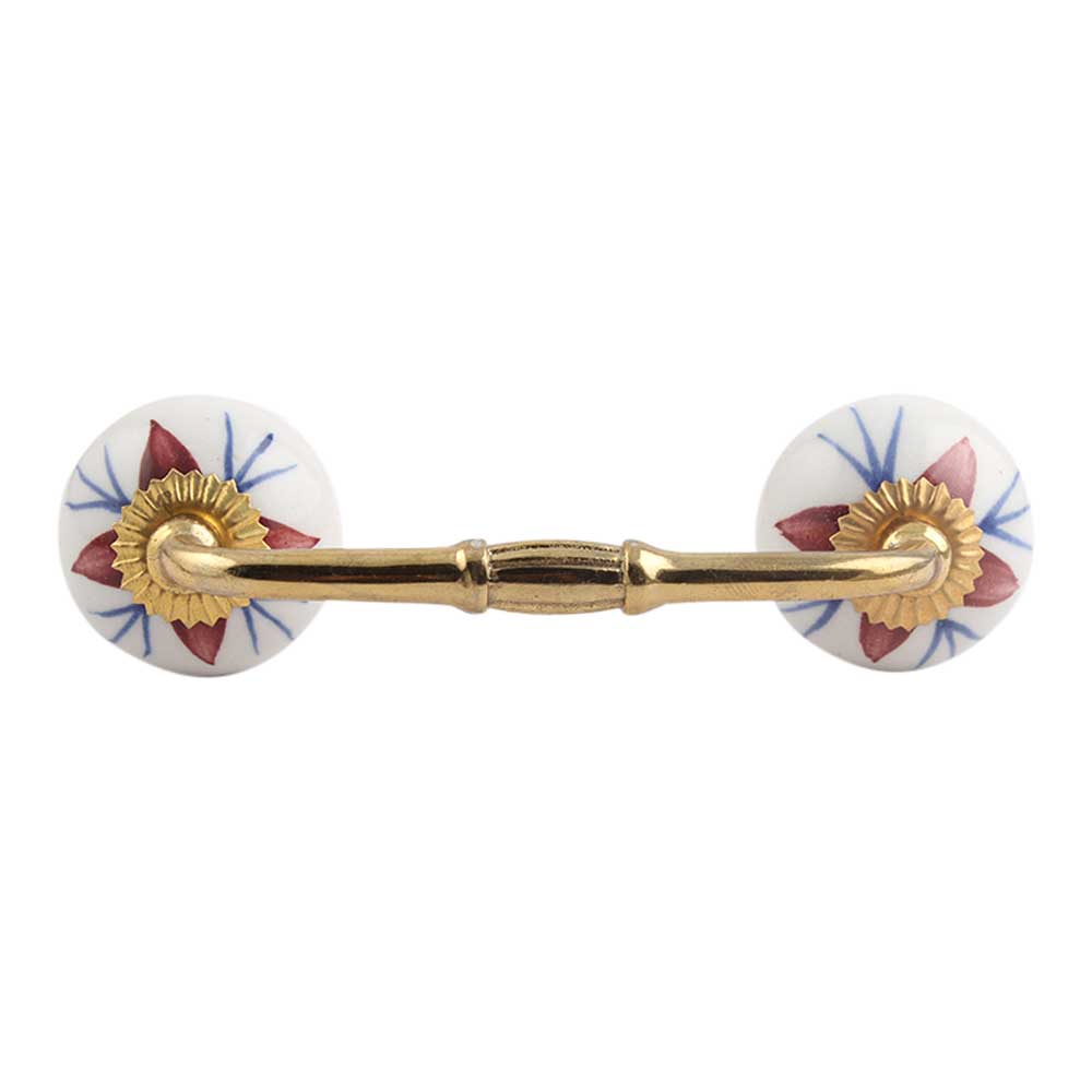 Deep Maroon Lily Ceramic Bridge Handle. Ideal for Drawer, Dresser, Cabinet, Wardrobe, Cupboard and Almirah.