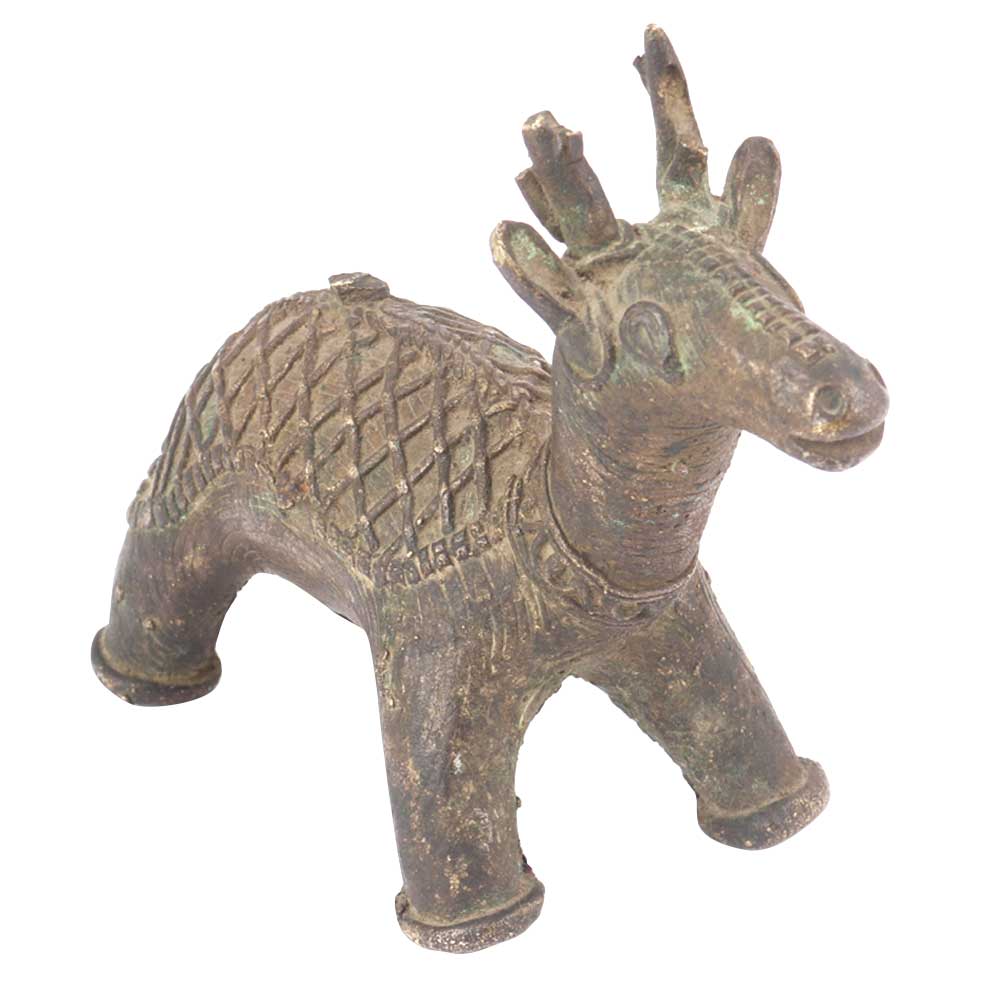 Tribal Brass Standing Deer Animal Statue Figure. It is a Fantastic Good Condition Piece for Collection. Ideal to Gift Someone or Just to Treat Yourself. You Can Also Hand on Wall & Put on Table.