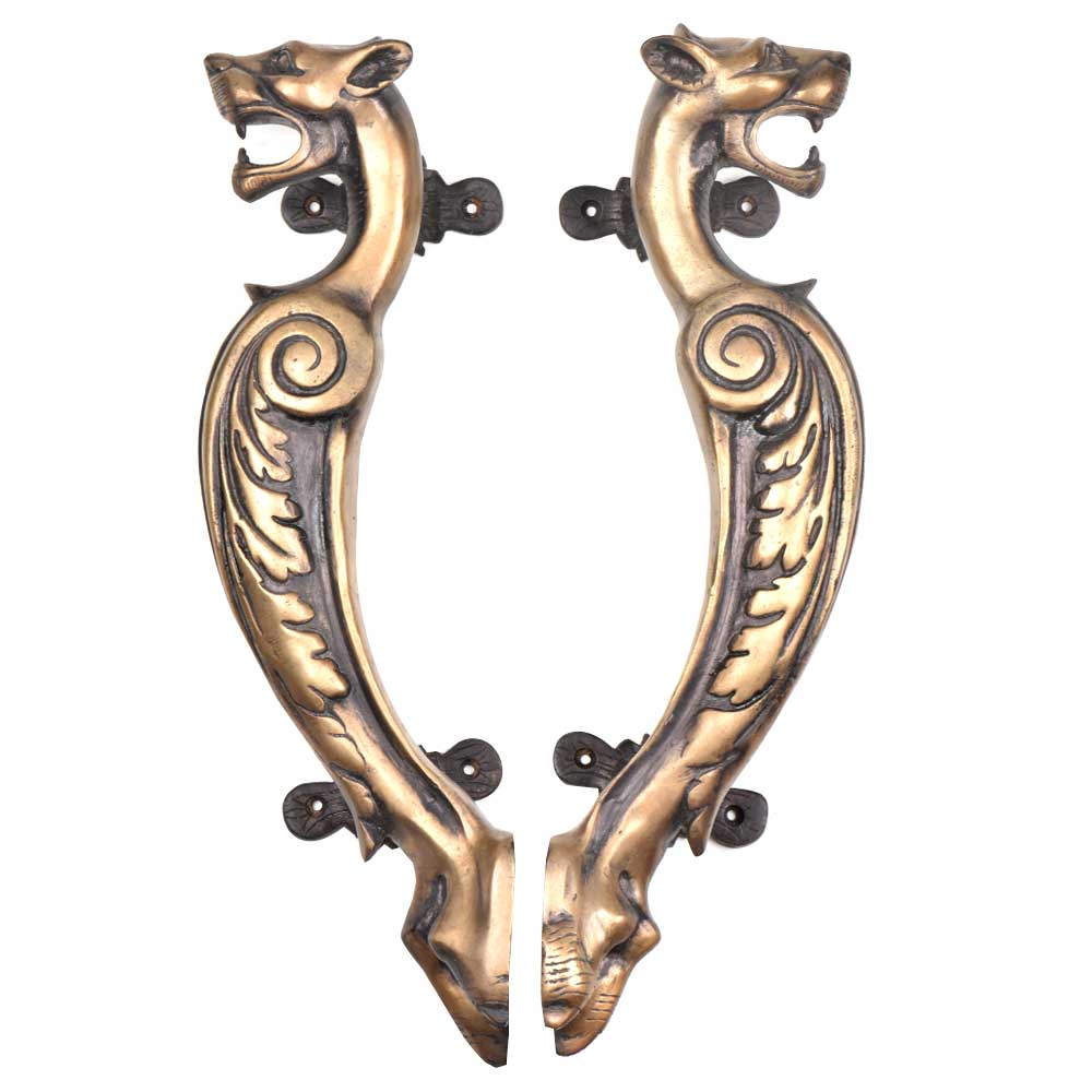 Bronze tiger door handmade door handle or pull has an elaborate French design in the centre and this rare looking tiger face door handle is handmade by the master craftsmen of India. Ideal for Drawer, Dresser, Cabinet, Wardrobe, Cupboard and Almirah.